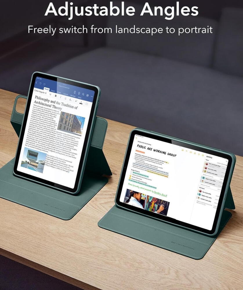 Προστατέψτε το iPad Air 7 2025 11" / iPad Air 6 2024 11" / Air 5 2022 10.9" / Air 4 2020 10.9", από χτυπήματα και γρατζουνιές με αυτή την κομψή θήκη Rebound Hybrid 360 της ESR. Αποτελεί τον ιδανικό τρόπο για την προστασία και μεταφορά του νέου σας πολύτιμου iPad με ματ φινίρισμα για περισσότερο στυλ! Είναι ένας συνδυασμός προστατευτικής θήκης και αποσπώμενου μαγνητικού καλύμματος, που μπορεί να αφαιρεθεί ανά πάσα στιγμή, μετατρέποντας το σε μία πρακτική βάση κατάλληλη και για άλλες συσκευές.