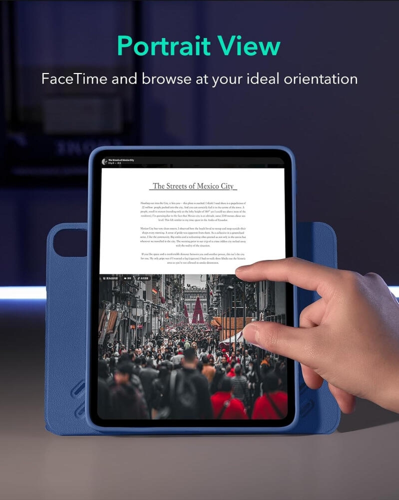 Παράλληλα χάρη στην έξυπνη μαγνητική κατασκευή του, σας προσφέρει έως και 9 διαφορετικές γωνίες θέασης, 6 για προβολή και 3 για γραφή! Επίσης, σας δίνει πολλαπλές επιλογές τοποθέτησης όπως, στο γραφείο, καναπέ, κρεββάτι ή ακόμα και στην αγκαλιά σας! Αποτελεί τον ιδανικό τρόπο για την προστασία και μεταφορά του νέου σας πολύτιμου iPad Air 7 2025 11" / iPad Air 6 2024 11" / Air 5 2022 10.9" / Air 4 2020 10.9".