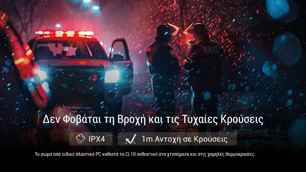 Είναι περίπου ρυθμιζόμενο κατά 180 μοίρες, ενώ είναι ανθεκτικό στη βροχή και στις τυχαίες πτώσεις, με πιστοποίηση IPX4 και αντοχή σε κρούσεις από ύψος έως 1 μέτρο. Επίσης, το σώμα του είναι κατασκευασμένο από ειδικό πλαστικό PC, που προσφέρει υψηλή αντοχή σε χτυπήματα και χαμηλές θερμοκρασίες.