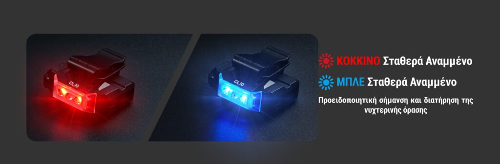 Με κόκκινη και μπλε προειδοποιητική αναλαμπή, καθιστά άμεσα ορατή την παρουσία σας, εξασφαλίζοντας αποτελεσματικά την ασφάλεια κατά την εκτέλεση των νυχτερινών σας καθηκόντων. Ενώ το κόκκινο ή το μπλε φως αναμμένα σταθερά, είναι κατάλληλα για προειδοποιητική σήμανση και διατήρηση της νυχτερινής όρασης.
