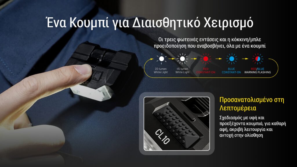 Ο φακός CL10 Multipurpose Ultra Lightweight Clip-on Light της Nitecore είναι εξαιρετικά ελαφρύς και ανθεκτικός! Με 45 lumens, παρέχει ικανοποιητικό φωτισμό ενώ λειτουργεί με 2 μπαταρίες AAA. Ο CL10 είναι αδιάβροχος και ανθεκτικός στις καιρικές συνθήκες!