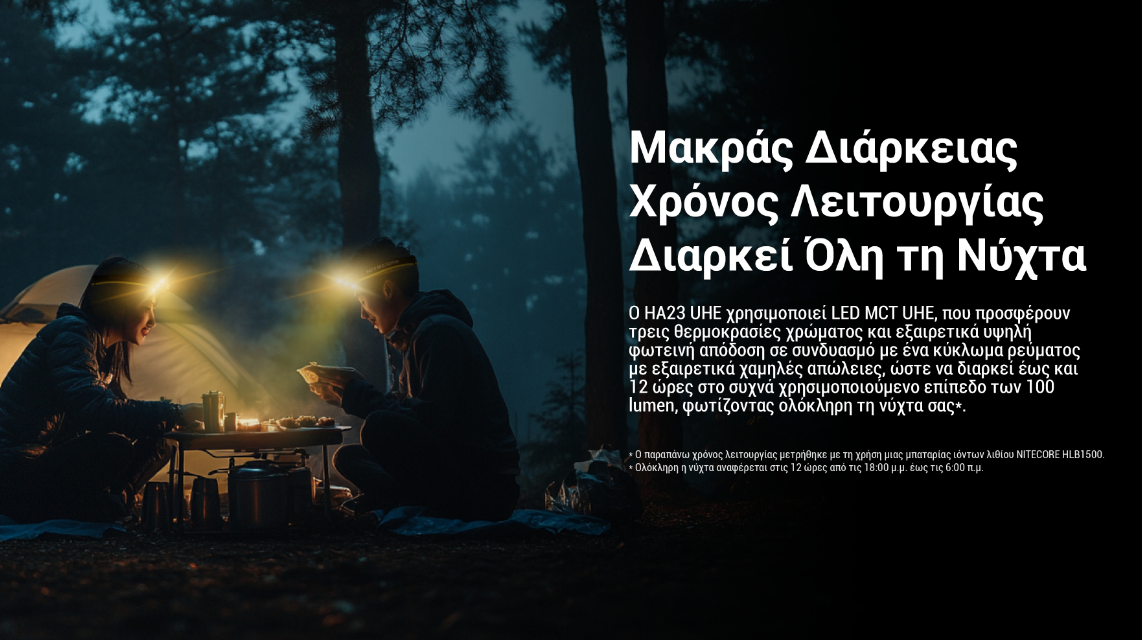 Σημείωση: Ο μέγιστος χρόνος λειτουργίας μετράται με τη χρήση μιας μπαταρίας ιόντων λιθίου της Nitecore HLB1500.