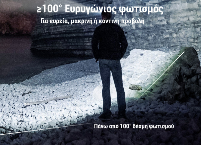 Είναι η κορυφαία ναυαρχίδα με τις μπαταρίες AAA είναι εδώ για να ξεπεράσει κάθε πρόκληση στην ύπαιθρο. Με διπλή τροφοδοσία, για απόλυτη ευελιξία όπου κι αν βρίσκεστε, ενώ η αδιάβροχη προστασία IP68 εξασφαλίζει την απροβλημάτιστη χρήση ακόμα και στις πιο απαιτητικές συνθήκες, αντέχει σε σκόνη, λάσπη και νερό, ακόμα και σε βάθος 2 μέτρων, ενώ η αυτονομία του διαρκεί όλη τη νύχτα δηλαδή για 12 ώρες!