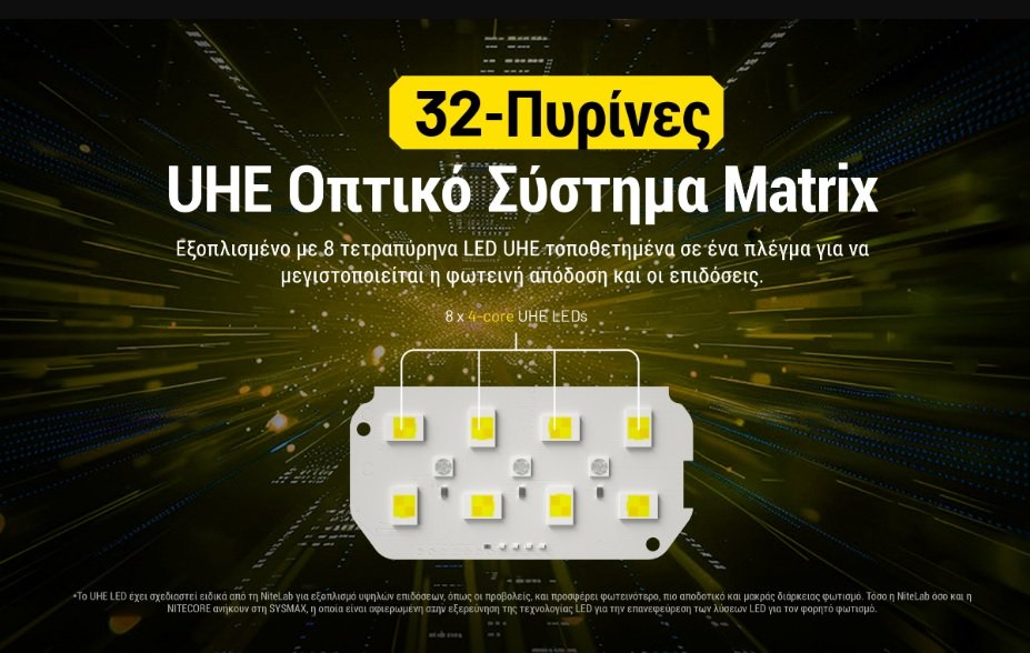 Διατίθενται τρία μοτίβα φωτισμού για γρήγορη πρόσβαση και ευκολία στη χρήση, ο μικτός φωτισμός είναι ιδανικός για τη γενική χρήση, ο συγκεντρωτικός φωτισμός είναι ιδανικός για αναζήτηση και διάσωση, ενώ ο διάχυτος φωτισμός είναι κατάλληλος για εργασίες σε κοντινή απόσταση. Διαθέτει 32 πυρήνες και προηγμένο οπτικό σύστημα UHE Matrix.