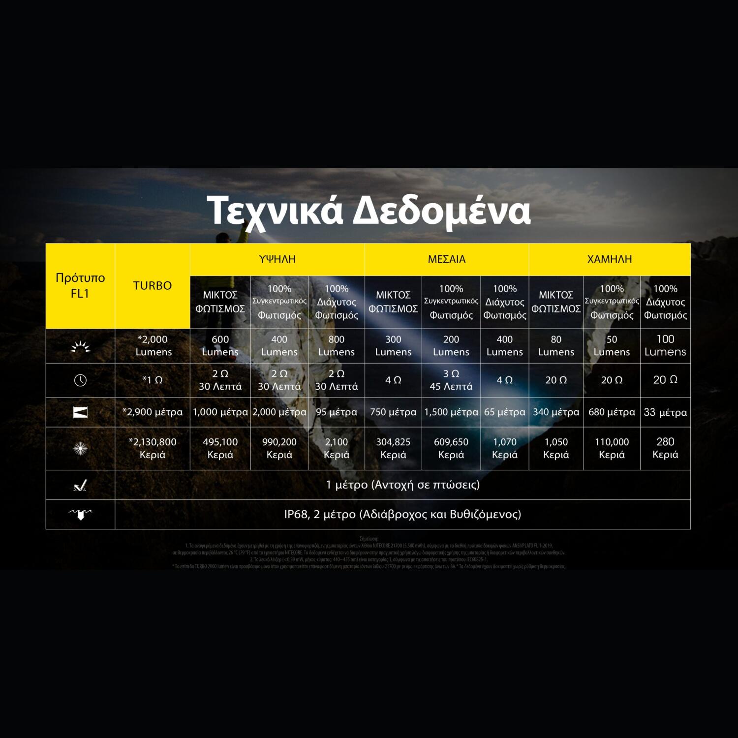 Ο διάχυτος φωτισμός είναι κατάλληλος για κοντινή εμβέλεια, συντήρηση, αντιμετώπιση έκτακτων περιστατικών ή περιπέτεια, ενώ ο μικτός φωτισμός είναι κατάλληλος για γενική χρήση. Διαθέτει μπαταρία χωρητικότητας 5.500 mAh (NL2155HP) με υποστήριξη γρήγορης φόρτισης 18W μέσω της θύρας Type-C, και η πλήρης φόρτιση ολοκληρώνεται σε περίπου 2 ώρες και 20 λεπτά με χρήση προσαρμογέα PD/QC (δεν περιλαμβάνεται). Η θύρα Type-C προστατεύεται με κάλυμμα ανθεκτικό στο νερό, στη σκόνη και στα χτυπήματα.