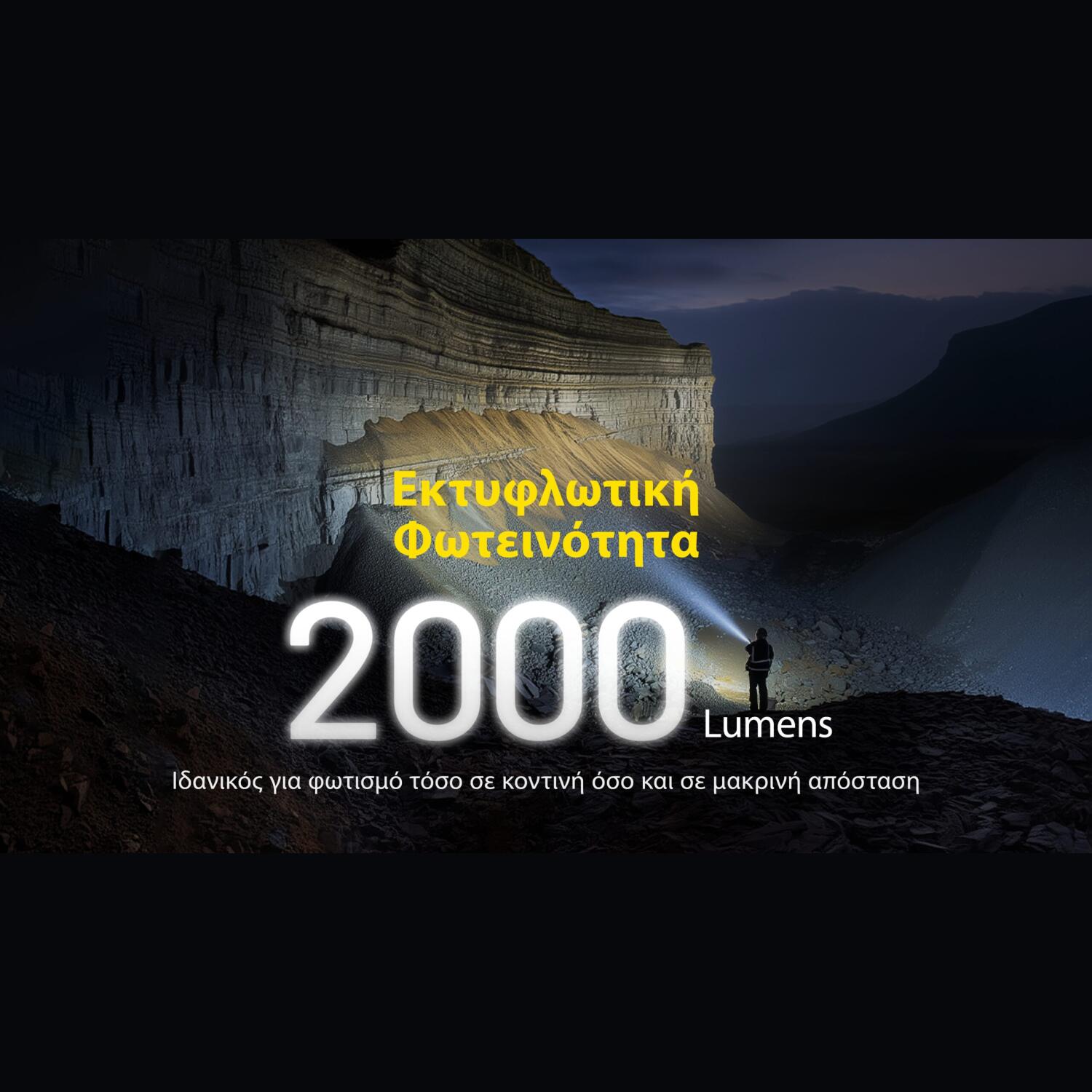 Με εμβέλεια έως και 2.900 μέτρα και εκτυφλωτική φωτεινότητα 2000 lumens, για να βλέπετε καθαρά όπου κι αν στοχεύετε, ο φακός αυτός είναι ιδανικός για κάθε περίσταση, είτε χρειάζεστε έντονο φως σε κοντινή απόσταση είτε σε μακρινή απόσταση. Με μεγάλη απόσταση, σταθερότητα, ομοιομορφία και συγκέντρωση, αυτός ο φακός θα σας εντυπωσιάσει.