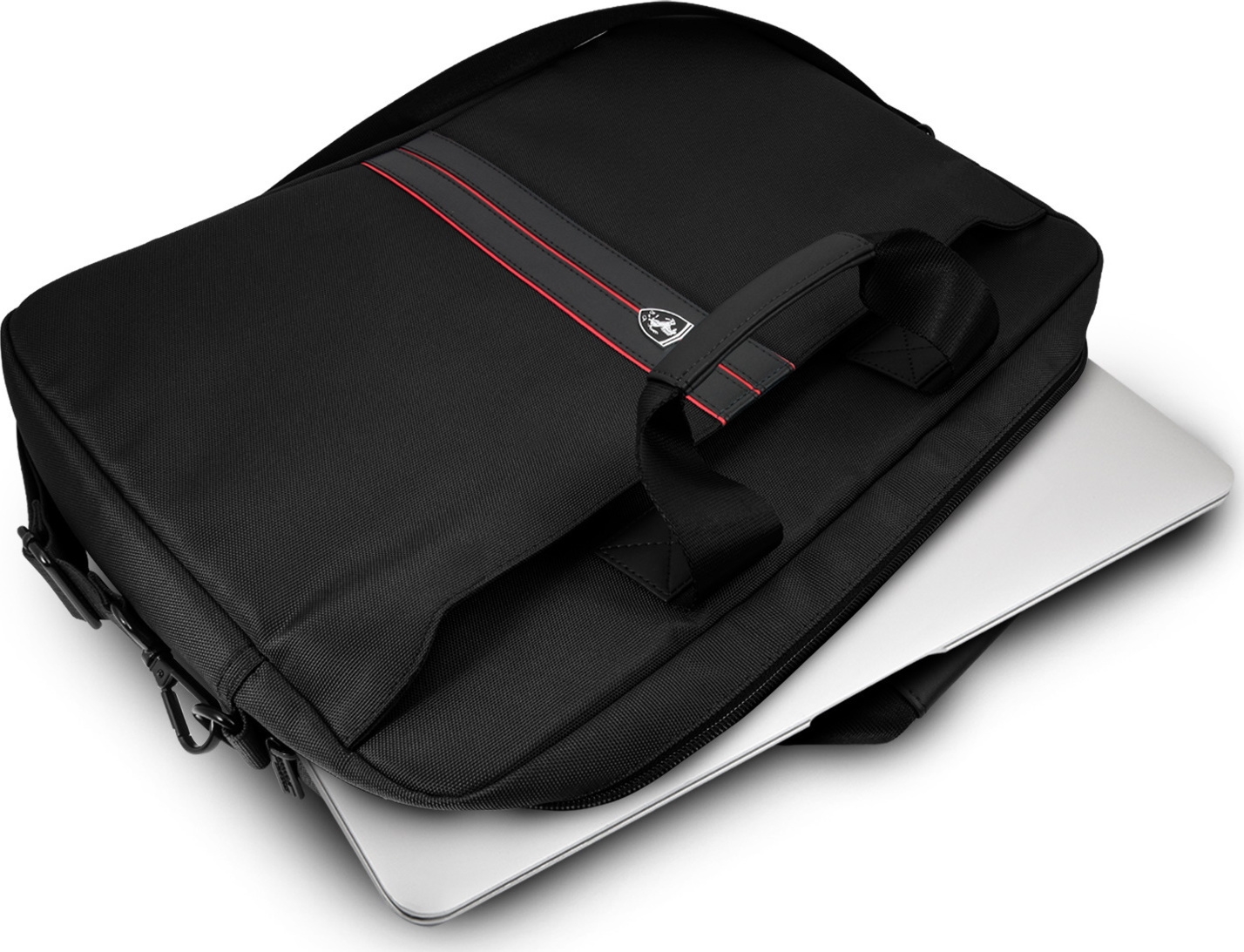 Μεταφέρετε το αγαπημένο σας Laptop 15.6" με τη μοναδική τσάντα της Ferrari από την συλλογή Urban Collection Bag. Κατασκευασμένο από ύφασμα υψηλής ποιότητας και με τα διπλά διαμερίσματα εσωτερικά θα διατηρείτε τις συσκευές σας ασφαλείς.