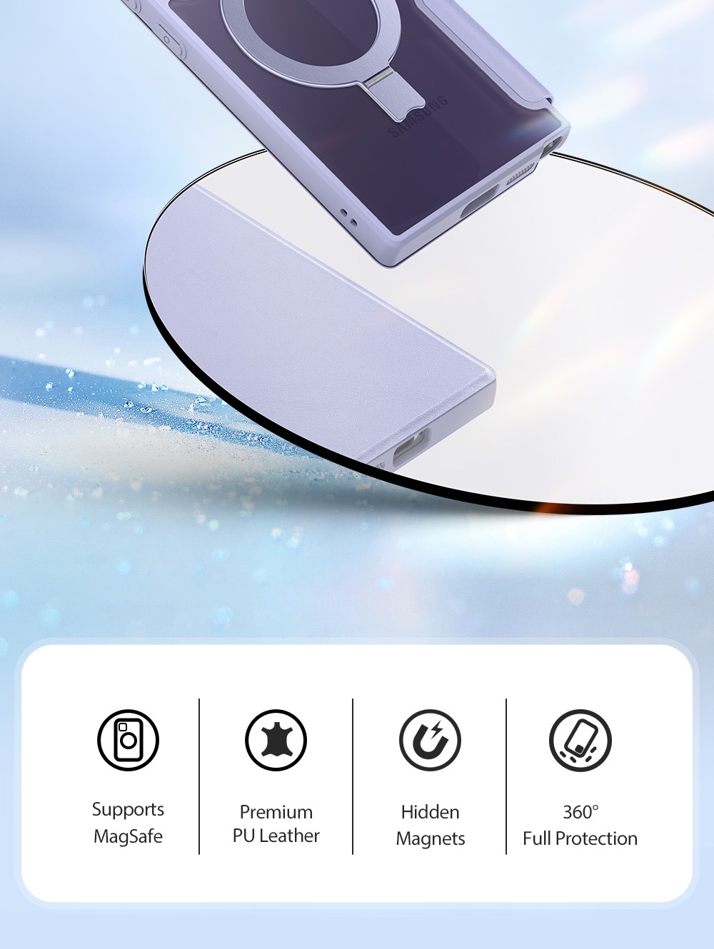 Ανακαλύψτε την πρώτη flip θήκη πορτοφόλι στον κόσμο με MagSafe, ειδικά σχεδιασμένη για το αγαπημένο σας Samsung Galaxy S24 Ultra. Αυτή η μοναδική θήκη Skin X Pro της Duxducis είναι απόλυτα συμβατή με φορτιστές MagSafe, πορτοφόλια και PowerBanks της Apple, προσφέροντάς σας ασύγκριτη ευκολία και λειτουργικότητα.