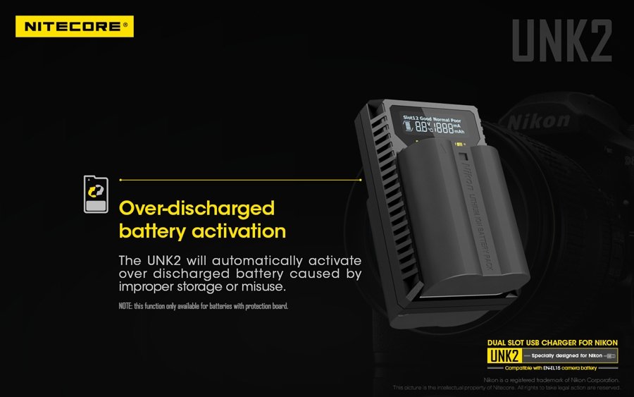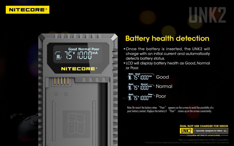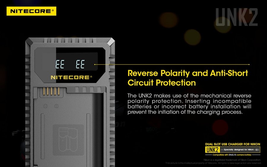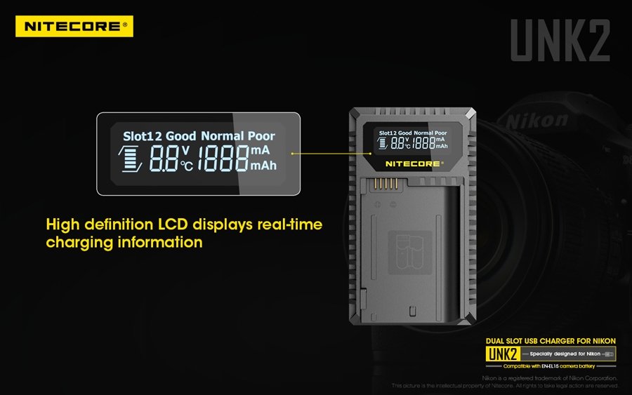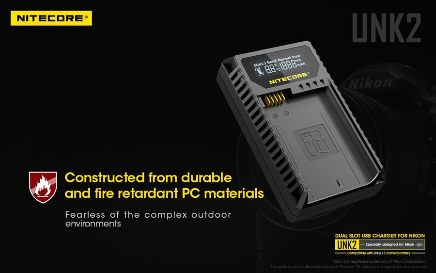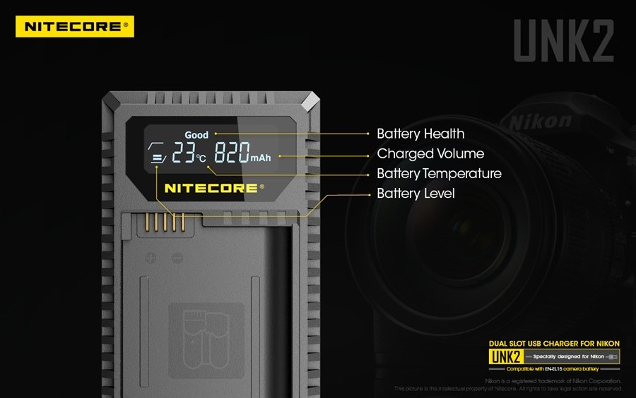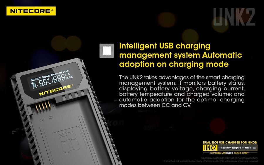Η Nitecore είναι παγκόσμιος ηγέτης στην αγορά των φορτιστών για μπαταρίες Ιόντων Λιθίου (Li-ion). Συμμορφώνεται πλήρως με τις οδηγίες του ISO9001 και διαθέτει τους πιο ακριβής εργοστασιακούς ελέγχους ποιότητας. Τα προϊόντα που φέρουν το σήμα της εταιρίας είναι όλα εγκεκριμένα από CE, RoHS, FCC, CEC, REACH, KC, C-TICK και είναι ειδικά σχεδιασμένος για μπαταρίες φωτογραφικών μηχανών Nikon.