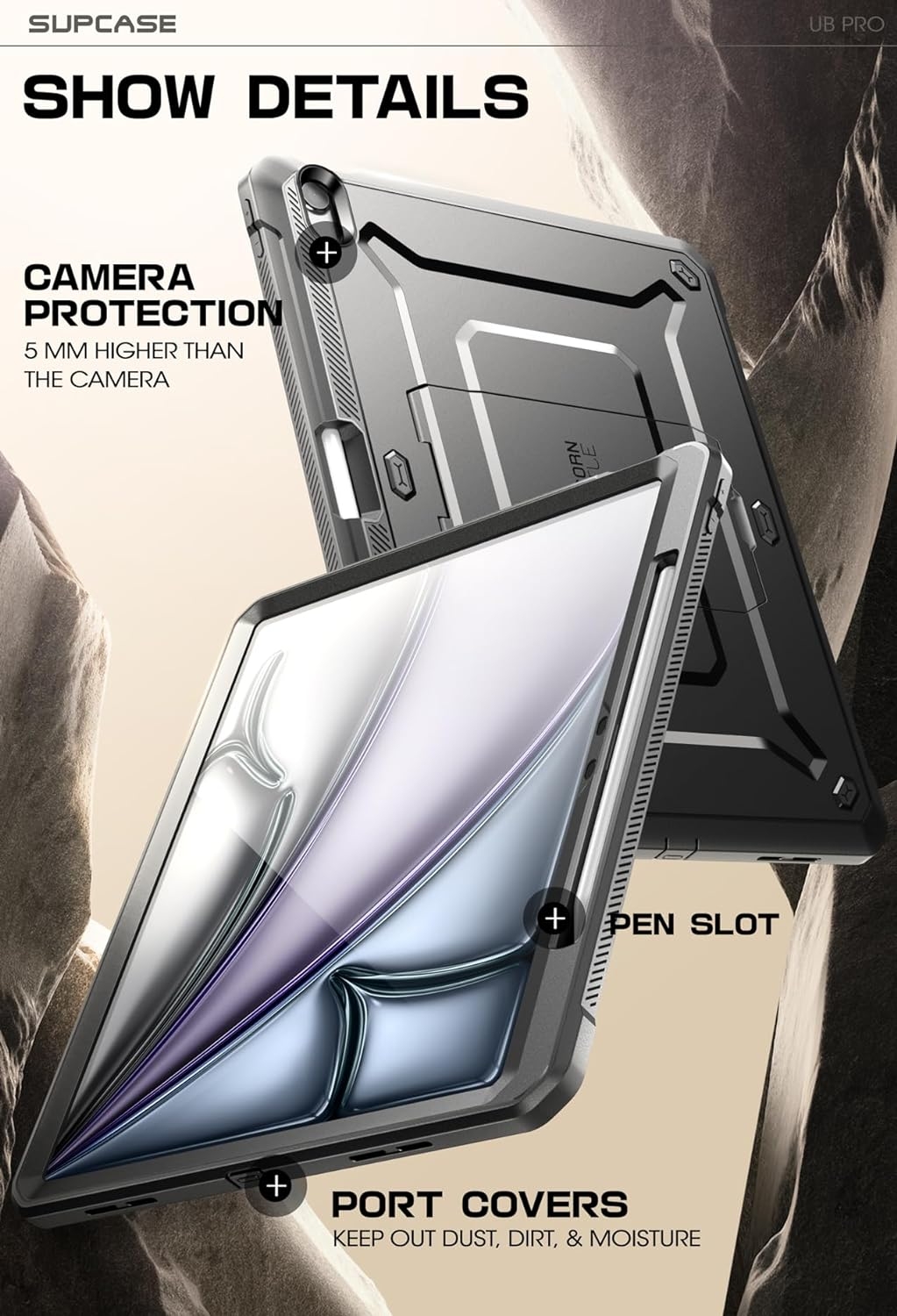 Η ανθεκτική και μοναδική θήκη Unicorn Beetle Pro από την Supcase είναι ειδικά σχεδιασμένη για το iPad Air 13" 2025 / 2024. Έχει κατασκευαστεί από ένα συνδυασμό μαλακού TPU και πολυκαρβονικού πλαστικού (PC), για να είναι εξαιρετικά ανθεκτική σε σκόνες, πτώσεις και χτυπήματα. Στη πίσω όψη της ακόμη, περιλαμβάνει μια στρώση από πιο ενισχυμένο TPU.