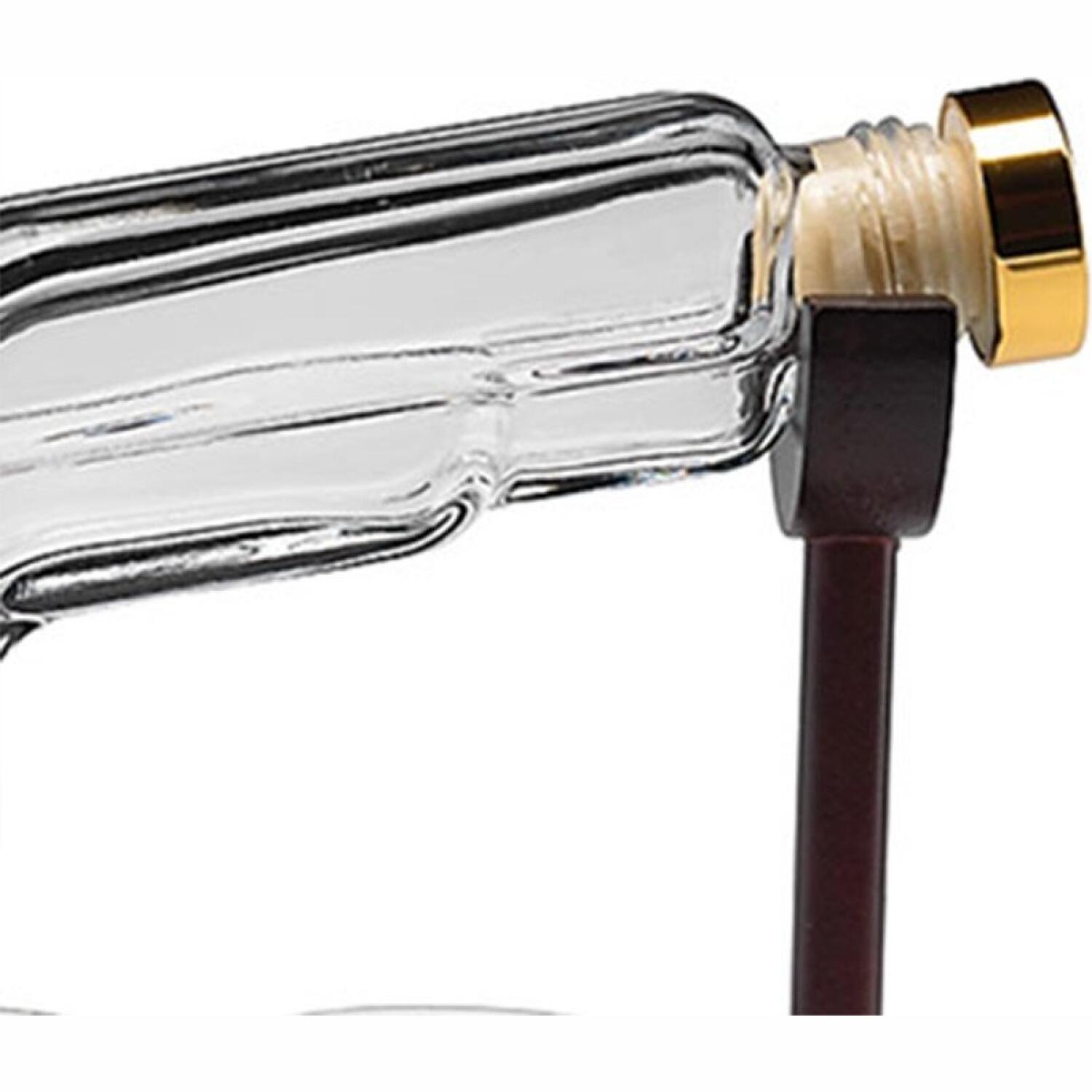Η καράφα σε σχήμα όπλου και τα ασορτί ποτήρια με σχεδιασμό bullet είναι κατασκευασμένα από υψηλής ποιότητας βοριοπυριτικό γυαλί, το οποίο είναι ασφαλές και απαλλαγμένο από μόλυβδο. Η ανθεκτικότητα του σας προσφέρει καθαρή γεύση και αντοχή στην μακροχρόνια χρήση. Η ξύλινη βάση προσφέρει σταθερότητα, αλλά αποτελεί και ένα διακοσμητικό στοιχείο υψηλής αισθητικής.