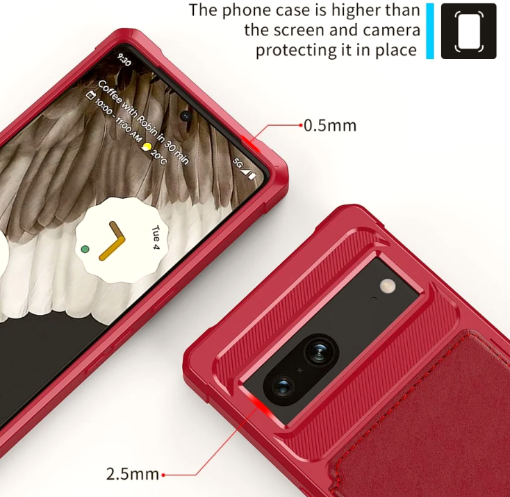 Η όμορφη ραφή περιμετρικά του πορτοφολιού, παρέχει ένα κομψό φινίρισμα και η μοναδική αντιολισθητική σιλικόνη κάνει τη θήκη μία από τις καλύτερες επιλογές! Η θήκη TPU παρέχει στο Google Pixel 7 καλή προστασία από πτώσεις, ενώ διαθέτει όλα τα επιθυμητά κουμπιά και θύρες, έτσι ώστε η συσκευή σας να είναι εύκολη στη χρήση.