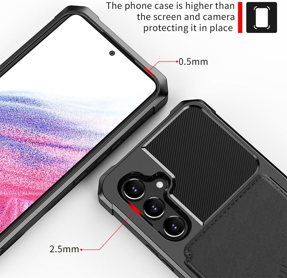 Επίσης η θήκη διαθέτει ένα μαγνήτη στο σημείο του πορτοφολιού, ώστε να μπορεί να τοποθετηθεί μαγνητικά σε μία μαγνητική βάση αυτοκινήτου. Ταυτόχρονα διαθέτει υπερυψωμένο χείλος κατά 0.5mm στην οθόνη και 2.5mm στην κάμερα, για προστασία από τις επίπεδες επιφάνειες. Είναι μία θήκη ιδανική για το κινητό αλλά και τις κάρτες σας!