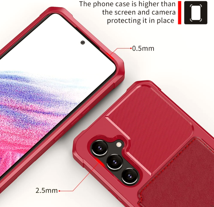 Επίσης η θήκη διαθέτει ένα μαγνήτη στο σημείο του πορτοφολιού, ώστε να μπορεί να τοποθετηθεί μαγνητικά σε μία μαγνητική βάση αυτοκινήτου. Ταυτόχρονα διαθέτει υπερυψωμένο χείλος κατά 0.5mm στην οθόνη και 2.5mm στην κάμερα, για προστασία από τις επίπεδες επιφάνειες. Είναι μία θήκη ιδανική για το κινητό αλλά και τις κάρτες σας!