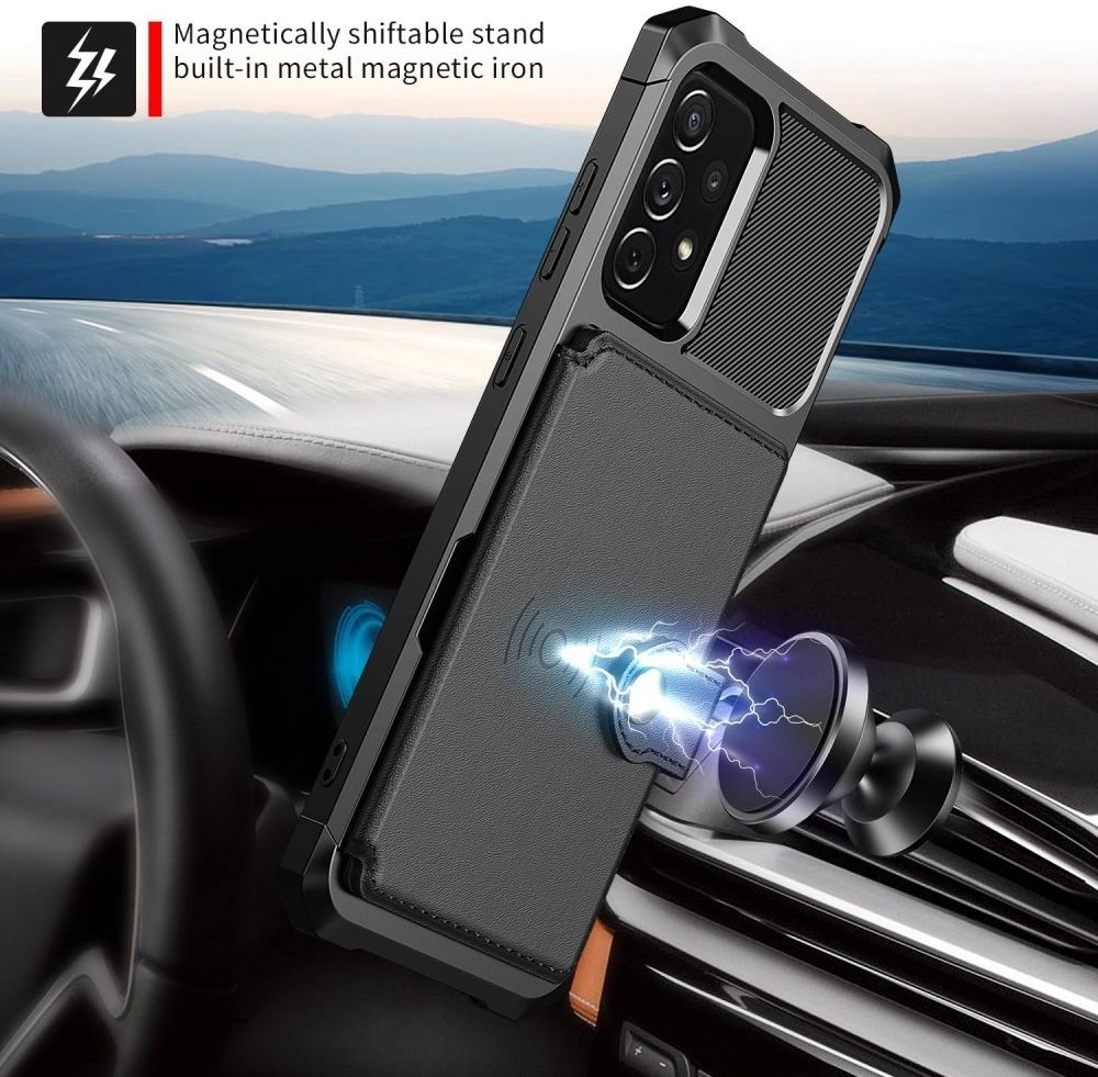 Επίσης η θήκη διαθέτει ένα μαγνήτη στο σημείο του πορτοφολιού, ώστε να μπορεί να τοποθετηθεί μαγνητικά σε μία μαγνητική βάση αυτοκινήτου. Ταυτόχρονα διαθέτει υπερυψωμένο χείλος κατά 0.5mm στην οθόνη και 2.5mm στην κάμερα, για προστασία από τις επίπεδες επιφάνειες. Είναι μία θήκη ιδανική για το κινητό αλλά και τις κάρτες σας!