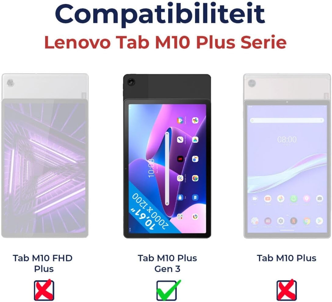 Η θήκη είναι συμβατή μόνο με το Lenovo Tab M10 Plus 3rd Gen 10.6" και όχι με το Lenovo Tab M10 HD 2nd Gen 10.1'', M10 3rd Gen 10.1" TB-328, M10 Plus 10.3'' ή M10 10.6''.