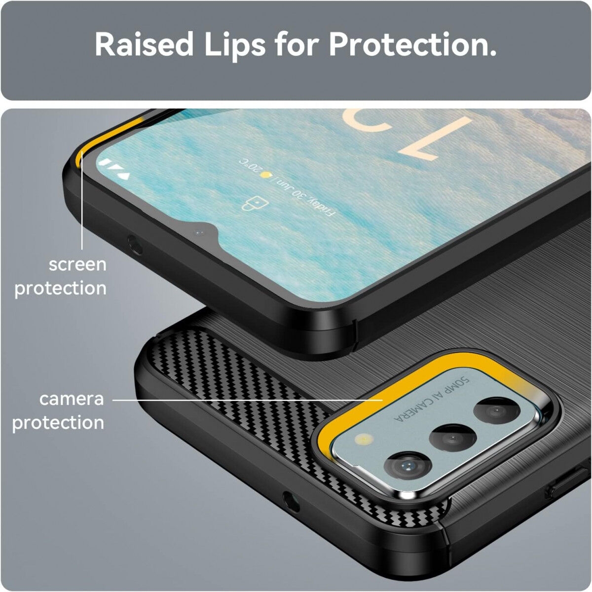 Είναι κατασκευασμένη από εύκαμπτη θερμοπλαστική πολυουρεθάνη TPU, η οποία απορροφά τους κραδασμούς. Διαθέτει ένα μοναδικό φινίρισμα από ανθρακονήματα εξωτερικά, ενώ εσωτερικά έχει έναν κυψελοειδή σχεδιασμό, ώστε να προστατεύει το Nokia G42 από γρατζουνιές, φθορές, πτώσεις ή χτυπήματα.