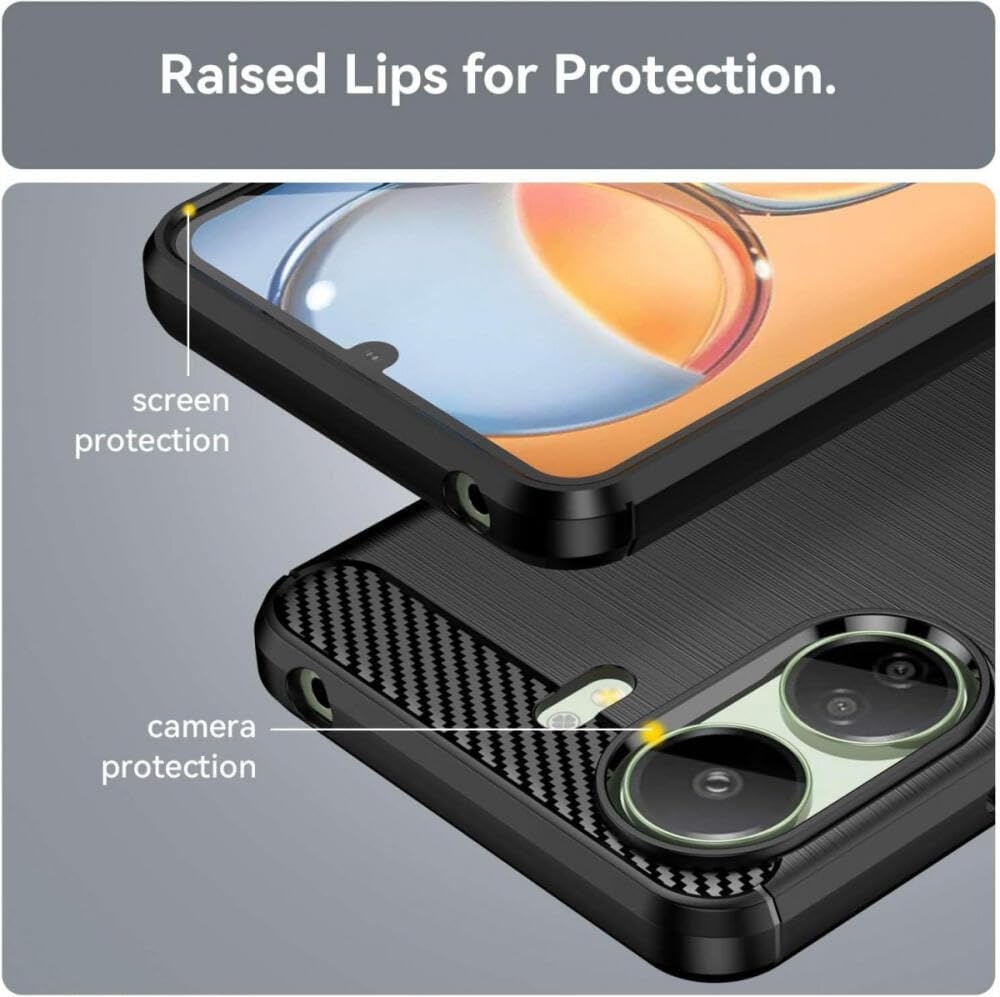 Είναι κατασκευασμένη από εύκαμπτη θερμοπλαστική πολυουρεθάνη TPU, η οποία απορροφά τους κραδασμούς. Διαθέτει ένα μοναδικό φινίρισμα από ανθρακονήματα εξωτερικά, ενώ εσωτερικά έχει έναν κυψελοειδή σχεδιασμό, ώστε να προστατεύει το Xiaomi Redmi 13C 4G / Poco C65 από γρατζουνιές, φθορές, πτώσεις ή χτυπήματα.