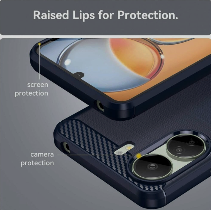 Είναι κατασκευασμένη από εύκαμπτη θερμοπλαστική πολυουρεθάνη TPU, η οποία απορροφά τους κραδασμούς. Διαθέτει ένα μοναδικό φινίρισμα από ανθρακονήματα εξωτερικά, ενώ εσωτερικά έχει έναν κυψελοειδή σχεδιασμό, ώστε να προστατεύει το Xiaomi Redmi 13C 4G / Poco C65 από γρατζουνιές, φθορές, πτώσεις ή χτυπήματα.