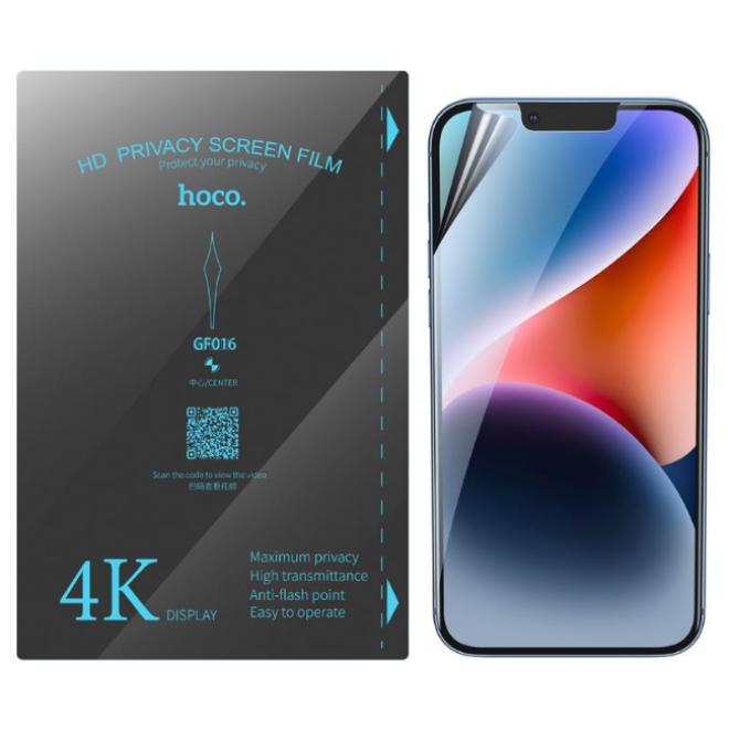 Η συσκευασία περιλαμβάνει: 1 x Privacy Clear Μεμβράνη Hoco, 1 x υγρό πανάκι, 1 x στεγνό πανάκι, 3 x αυτοκόλλητα.