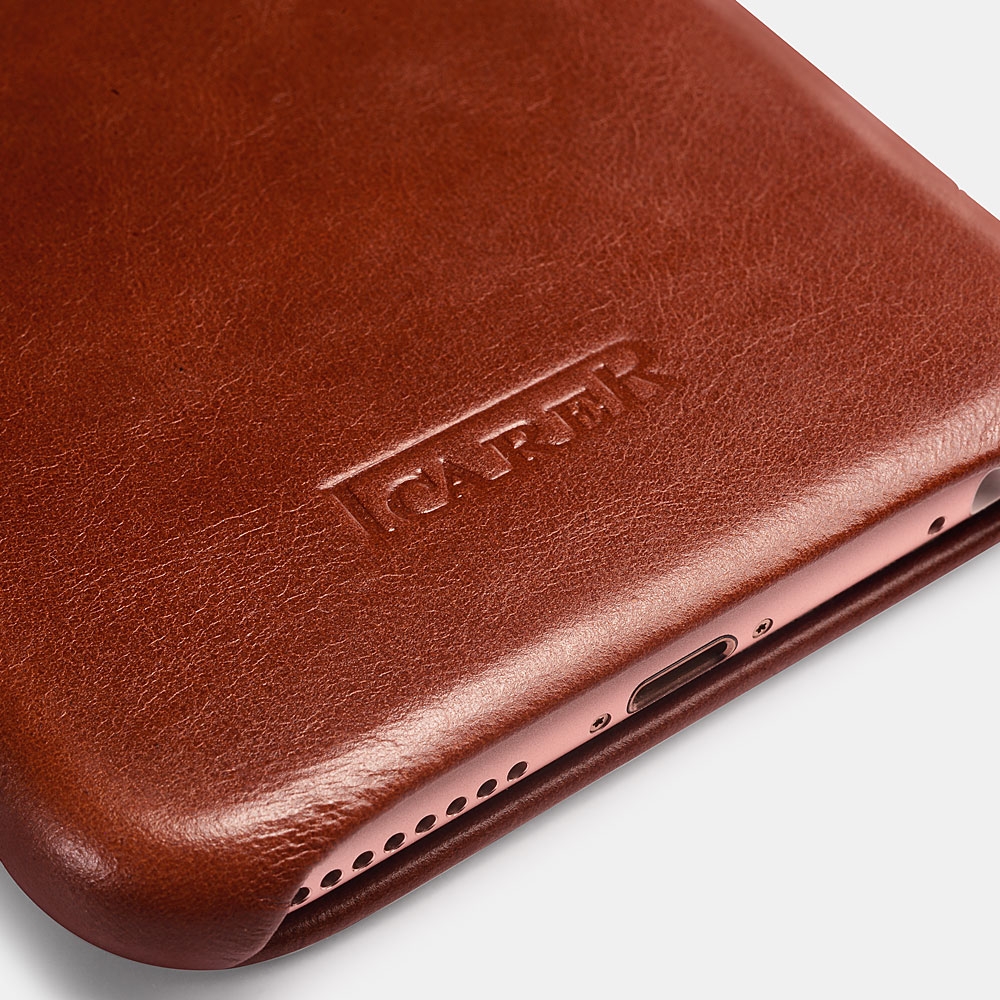 H iCarer Curved Edge Vintage Folio, είναι μια μοναδική θήκη - πορτοφόλι, κατασκευασμένη από γνήσιο, σκληρό δέρμα άριστης ποιότητας αλλά και ξεχωριστή εσωτερική σχεδίαση από επένδυση μικροϊνών suede, με απαλό φινίρισμα.