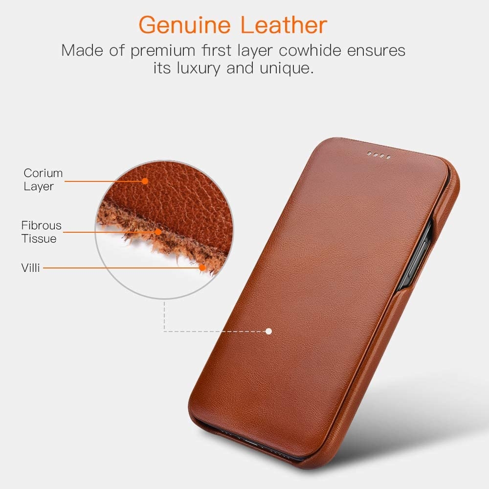 H iCarer Vintage Curved Edge είναι μια μοναδική θήκη - πορτοφόλι, κατασκευασμένη από γνήσιο, σκληρό δέρμα άριστης ποιότητας αλλά και ξεχωριστή εσωτερική σχεδίαση από επένδυση μικροϊνών suede, με απαλό φινίρισμα.