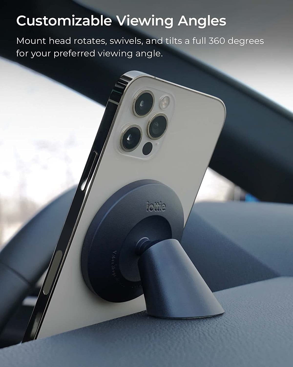 Η μαγνητική βάση στήριξης κινητών MagSafe για το ταμπλό του αυτοκινήτου σας, Velox Magnetic Flush Mount της iOttie, σας επιτρέπει να στηρίζετε τις αγαπημένες σας σειρές iPhone 14, 13 και 12, εξασφαλίζοντας άνετη και εύκολη χρήση κατά την διάρκεια της οδήγησής σας.