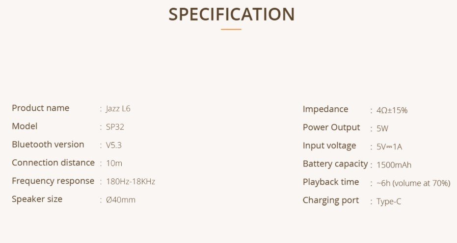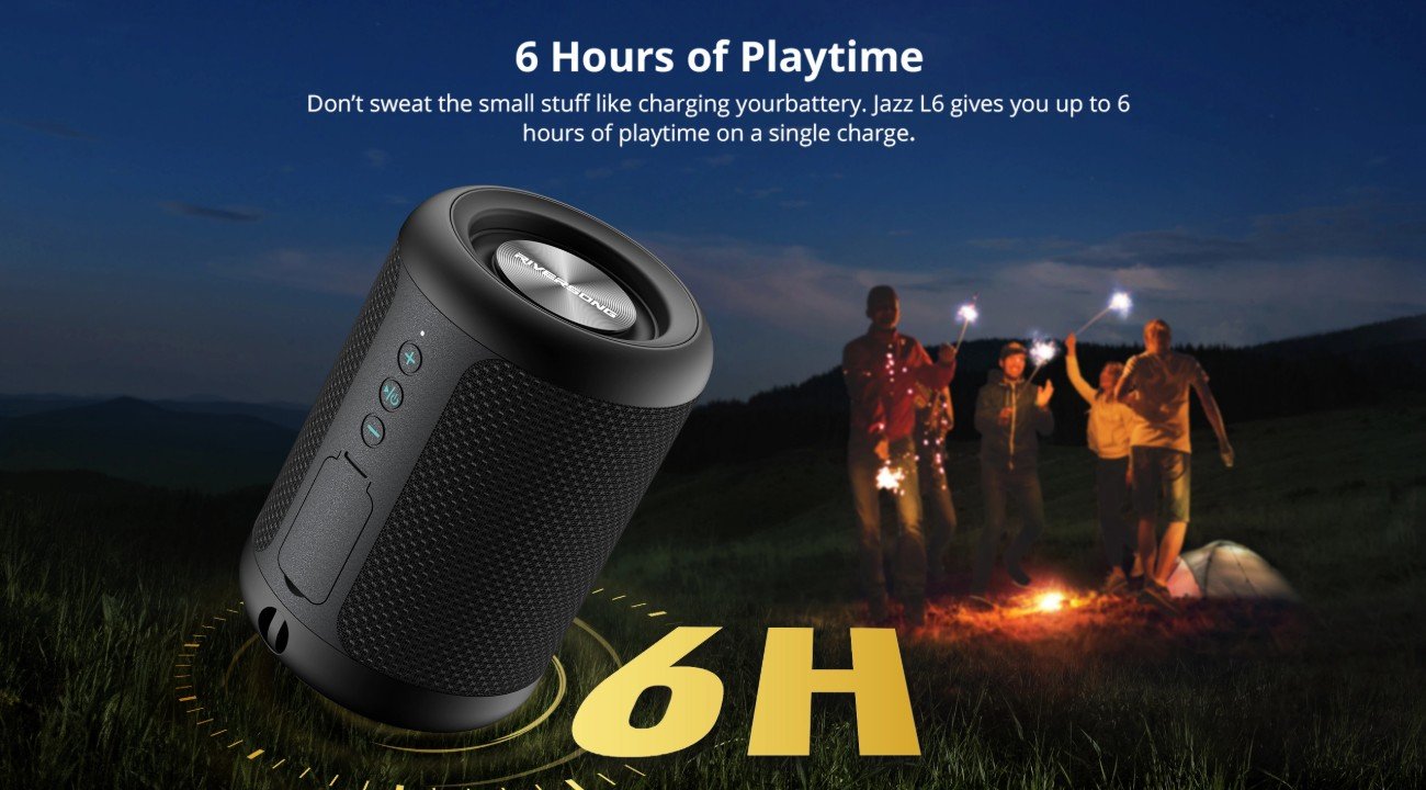 Με στερεοφωνικό ήχο HD και κάλυψη 360°, θα γεμίζει κάθε χώρο, ενώ με τα δυνατά μπάσα θα βυθιστείτε σε μια δυνατή μουσική εμπειρία! Με μία μόνο φόρτιση, το Jazz L6 σας χαρίζει έως και 6 ώρες συνεχούς μουσική, για ατέλειωτες στιγμές απόλαυσης.