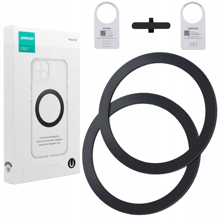 Ο αυτοκόλλητος μεταλλικός μαγνητικός δακτύλιος JR-MAG-M3 Universal Metal Magnetic Ring της Joyroom σας επιτρέπει την ασφαλή και γρήγορη ασύρματη φόρτιση, μετατρέποντας την αγαπημένη σας PC ή TPU θήκη σε μία μαγνητική θήκη συμβατή με φορτιστές και αξεσουάρ MagSafe.