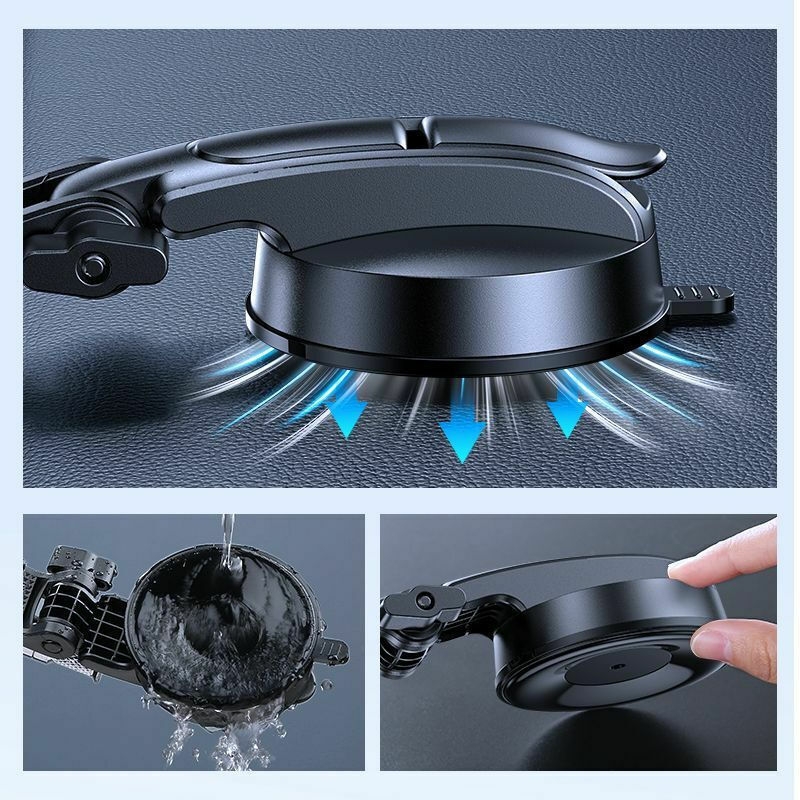 Κατασκευασμένη από ανθεκτικά και ποιοτικά υλικά ABS, PC και σιλικόνη με τηλεσκοπικό βραχίονα, στηρίζεται με βεντούζα στο ταμπλό του αυτοκινήτου. Είναι περιστρεφόμενη 360 μοίρες και ιδανική για συσκευές 4.7" έως 6.7". Διαθέτει σταθεροποιητές απορρόφησης κραδασμών, ενώ η βεντούζα με το δυνατό κολλώδες τζελ δεν αφήνει κενό αέρα παρέχοντας απόλυτη σταθεροποίηση.