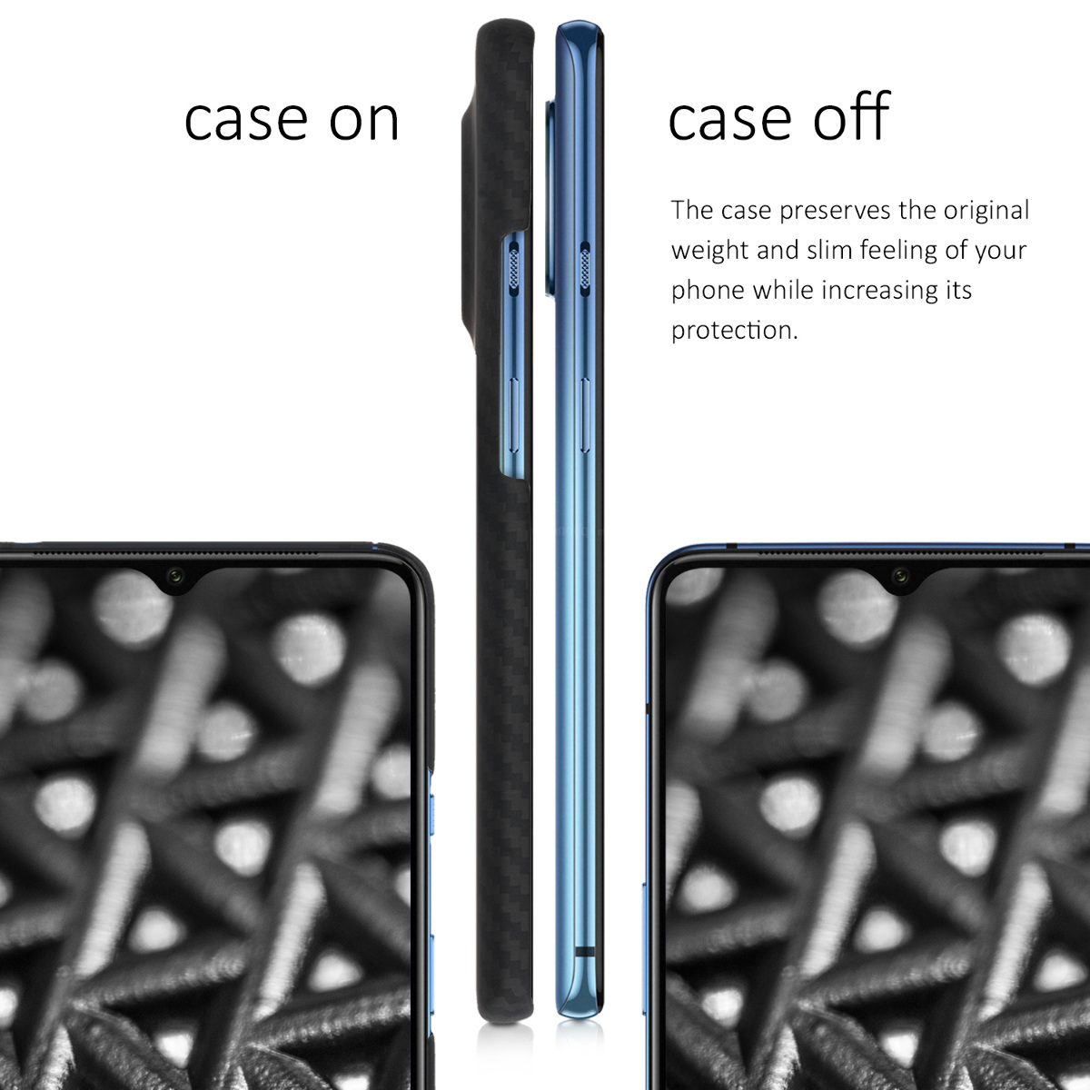 Πρόκειται για μία θήκη κατασκευασμένη 100% από αραμίδιο (aramid), ένα υλικό που χρησιμοποιείται και για την κατασκευή εξοπλισμού θωράκισης σώματος, διαστημόπλοια και αυτοκίνητα Formula 1. Παρά τη μέγιστη προστασία που σας προσφέρει, το design της είναι ιδιαίτερα κομψό και λεπτεπίλεπτο.