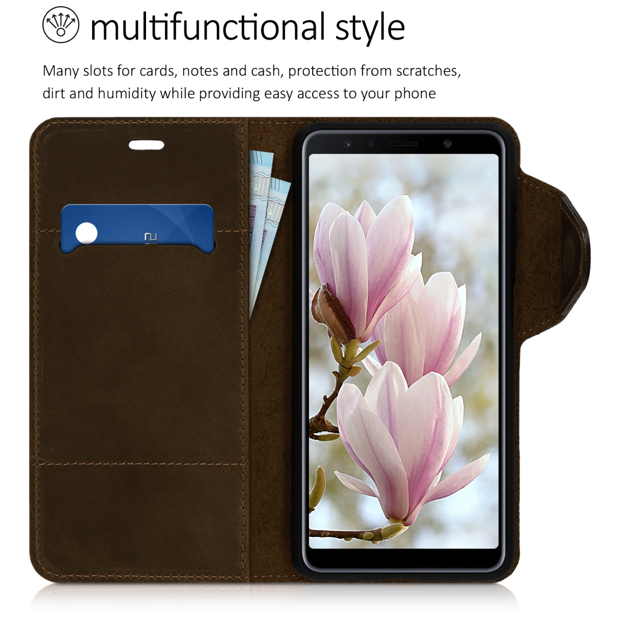 Η θήκη book είναι ειδικά σχεδιασμένη για το Samsung Galaxy A7 2018 και είναι κατασκευασμένο έτσι ώστε να προστατέψει την αγαπημένη σας συσκευή από σκόνη, υγρασία, γρατζουνιές και φθορές που μπορεί να προκληθούν από την καθημερινή χρήση του.