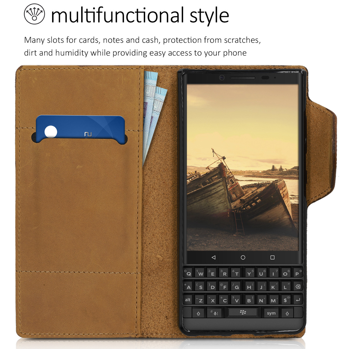 Το πορτοφόλι - θήκη είναι ειδικά σχεδιασμένο για το Blackberry KEY2 LE και διαθέτει 1 θήκη για πιστωτικές κάρτες και μια εσωτερική θήκη για χαρτονομίσματα. Με μαγνητικό κλιπ για ευκολότερη χρήση. Κατασκευασμένη απο γνήσιο δέρμα, συνδυάζει κομψότητα και προστασία καθώς προστατεύει αποτελεσματικά από σκόνες, γρατζουνιές και χτυπήματα, ενώ επιτρέπει την πρόσβαση σε όλες τις λειτουργίες της συσκευής σας.
