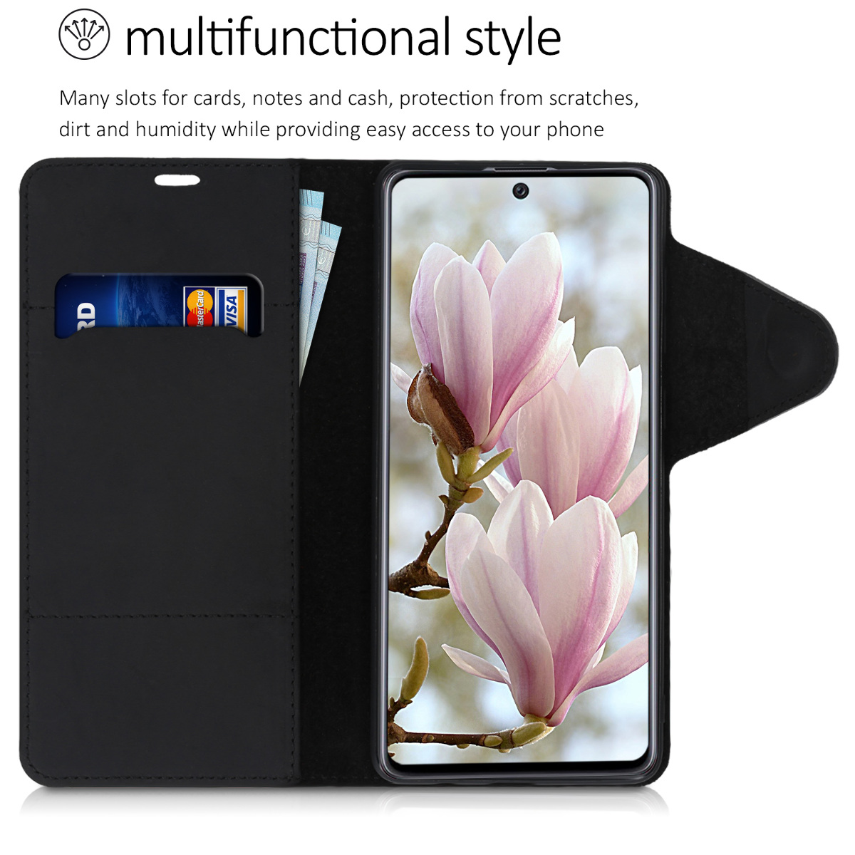 Το πορτοφόλι -θήκη είναι ειδικά σχεδιασμένο για το Samsung Galaxy A71 και διαθέτει 1 θήκη για πιστωτικές κάρτες και μια εσωτερική θήκη για χαρτονομίσματα. Με μαγνητικό κλιπ για ευκολότερη χρήση. Κατασκευασμένη απο γνήσιο δέρμα, συνδυάζει κομψότητα και προστασία καθώς προστατεύει αποτελεσματικά από σκόνες, γρατζουνιές και χτυπήματα, ενώ επιτρέπει την πρόσβαση σε όλες τις λειτουργίες της συσκευής σας.