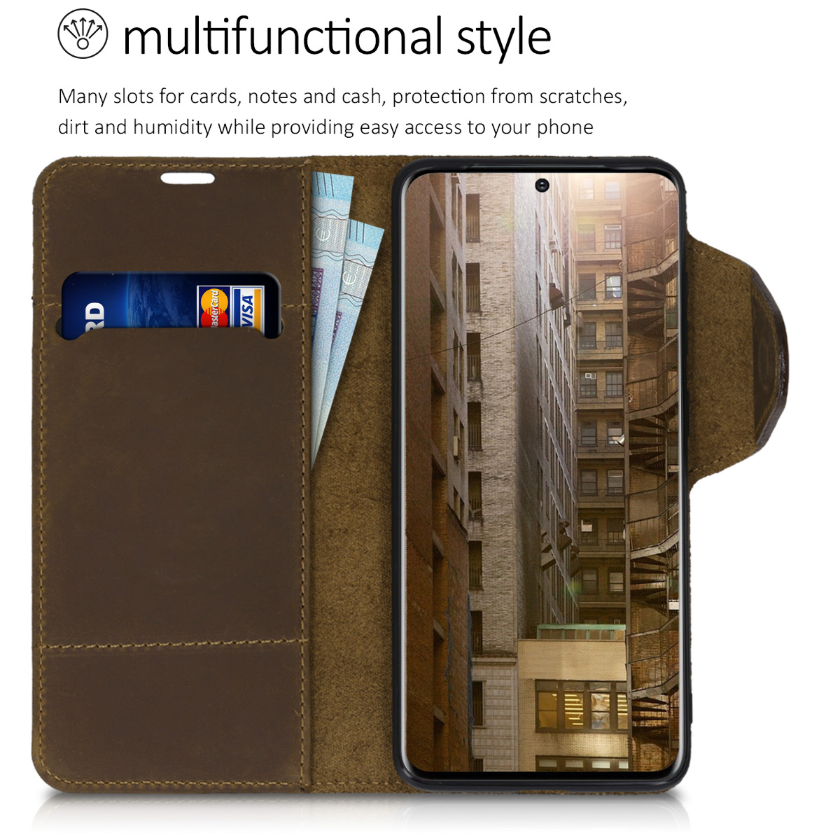 Το πορτοφόλι - θήκη είναι ειδικά σχεδιασμένο για το Samsung Galaxy S20 και διαθέτει 1 θήκη για πιστωτικές κάρτες και μια εσωτερική θήκη για χαρτονομίσματα. Με μαγνητικό κλιπ για ευκολότερη χρήση. Κατασκευασμένη απο γνήσιο δέρμα, συνδυάζει κομψότητα και προστασία καθώς προστατεύει αποτελεσματικά από σκόνες, γρατζουνιές και χτυπήματα, ενώ επιτρέπει την πρόσβαση σε όλες τις λειτουργίες της συσκευής σας.