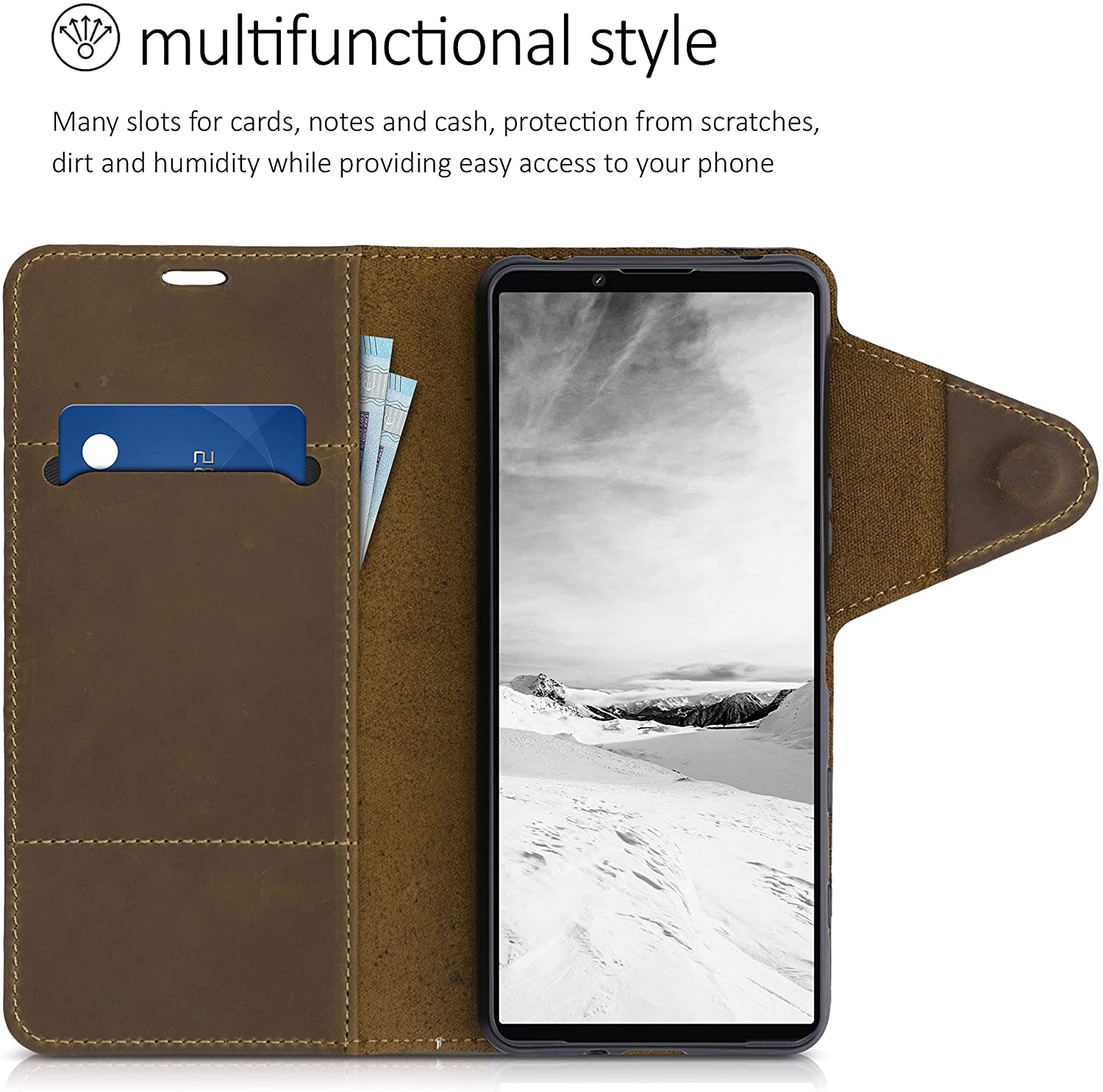 Η θήκη - πορτοφόλι της Kalibri, είναι ειδικά σχεδιασμένη για το Sony Xperia 5 III. Κατασκευασμένη έτσι ώστε να προστατέψει την αγαπημένη σας συσκευή από σκόνη, υγρασία, γρατζουνιές, προσκρούσεις, πτώσεις και φθορές, οι οποίες ενδεχομένως να προκληθούν από την καθημερινή χρήση του.