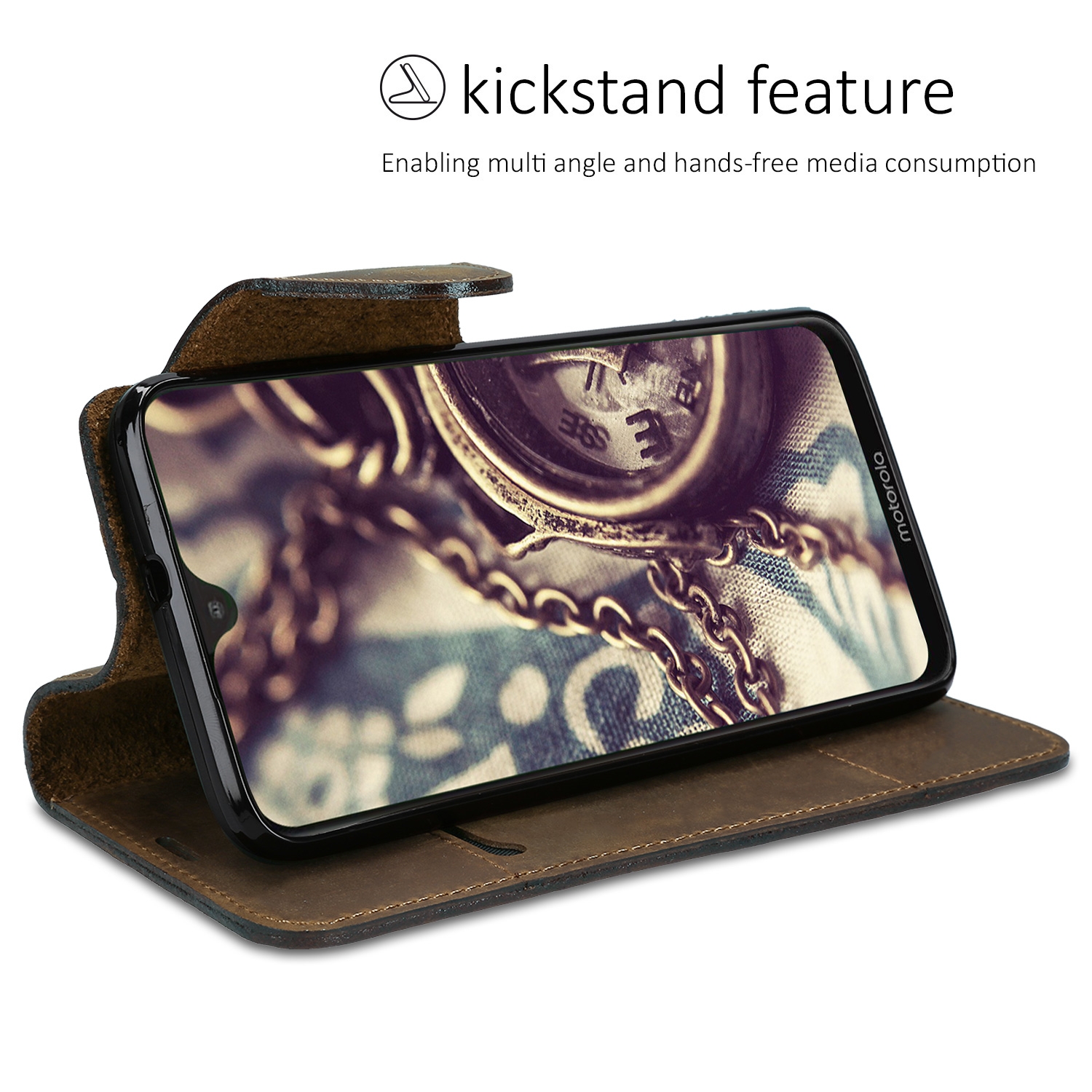Μπορείτε να χρησιμοποιήσετε το Motorola Moto G7 / Moto G7 Plus ενώ βρίσκεται στη θήκη, να μιλήσετε, να βγάλετε φωτογραφίες, να το φορτίσετε ή να ακούσετε μουσική με τα ακουστικά.