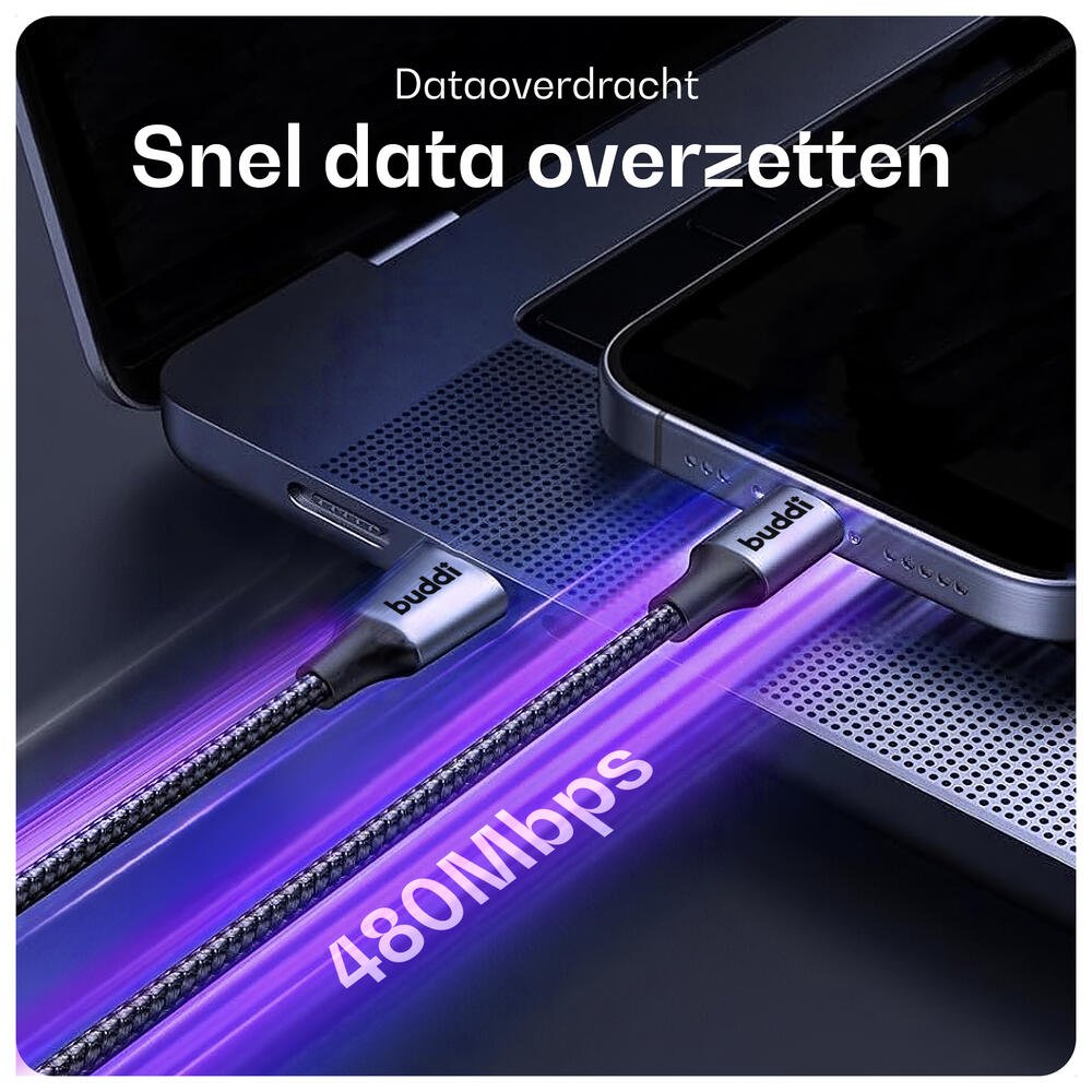 Εκτός από την φόρτιση των συσκευών σας, σας δίνει την δυνατότητα μεταφοράς δεδομένων μέσω USB 2.0 με ταχύτητα 480 Mbps, μπορείτε να μεταφέρετε φωτογραφίες, βίντεο και άλλα αρχεία με ευκολία από το τηλέφωνο, το tablet ή άλλες συσκευές σας. Κατασκευασμένο από πλεγμένο νάιλον, το καλώδιο είναι πολύ πιο ανθεκτικό από τα συνηθισμένα από πλαστικό ή σιλικόνη.