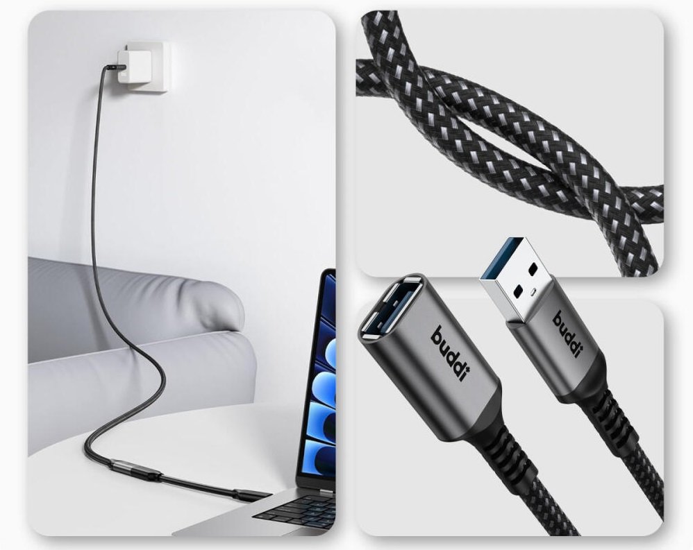To καλώδιο Flex Extension Cable της Buddi είναι ένα καλώδιο USB-A (Male) σε USB-A (Female) ειδικά σχεδιασμένο για την επέκταση του USB-A καλωδίου σας! Κατασκευασμένο για τη γρήγορη μεταφορά αρχείων, φωτογραφιών και βίντεο, καθώς και για τη φόρτιση των συσκευών σας.