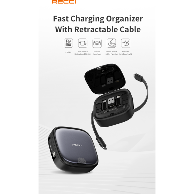 Το καλώδιο RS36T Retractable της Recci είναι ένα πρακτικό και γρήγορο καλώδιο φόρτισης και μεταφοράς δεδομένων Type-C σε Type-C με καλώδιο και σε USB-A, Lightning, MicroUSB με αντάπτορες. Διαθέτει πτυσσόμενο σχεδιασμό, με πολλαπλές διεπαφές και ισχύ PD 65W, για την φόρτιση των συσκευών σας.