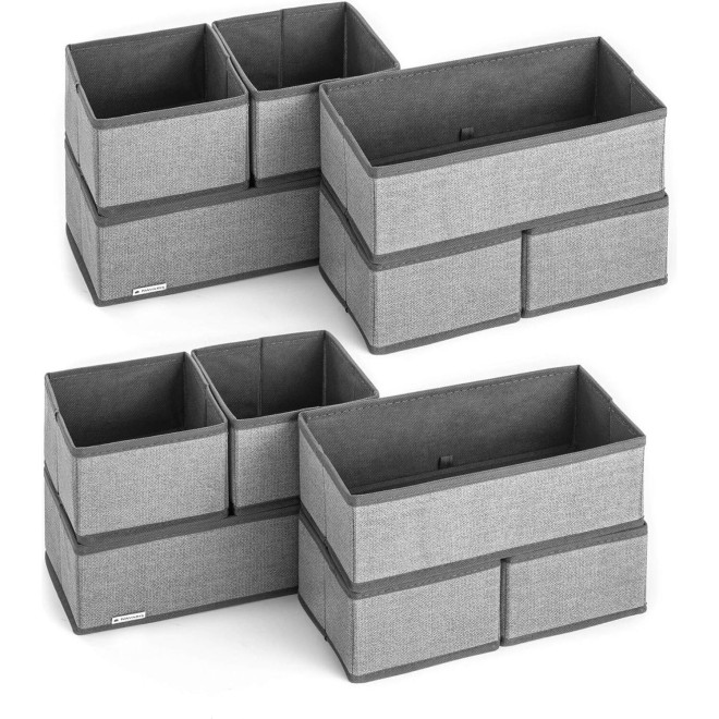 Οργανώστε και βάλτε τάξη σε κάθε χώρο του σπιτιού σας και τακτοποιήστε τα ρούχα, εσώρουχα, κάλτσες, αξεσουάρ, καλλυντικά, παιχνίδια και πολλά άλλα με αυτό το πρακτικό home gadget που δεν πρέπει να λείπει από κανένα χώρο! Το σετ αποτελείται από 12 κουτιά αποθήκευσης σε δύο διαφορετικά μεγέθη, 8 μικρά σε μέγεθος 14 x 14 x 10 cm και 4 μεσαία σε μέγεθος 28 x 14 x 10 cm.