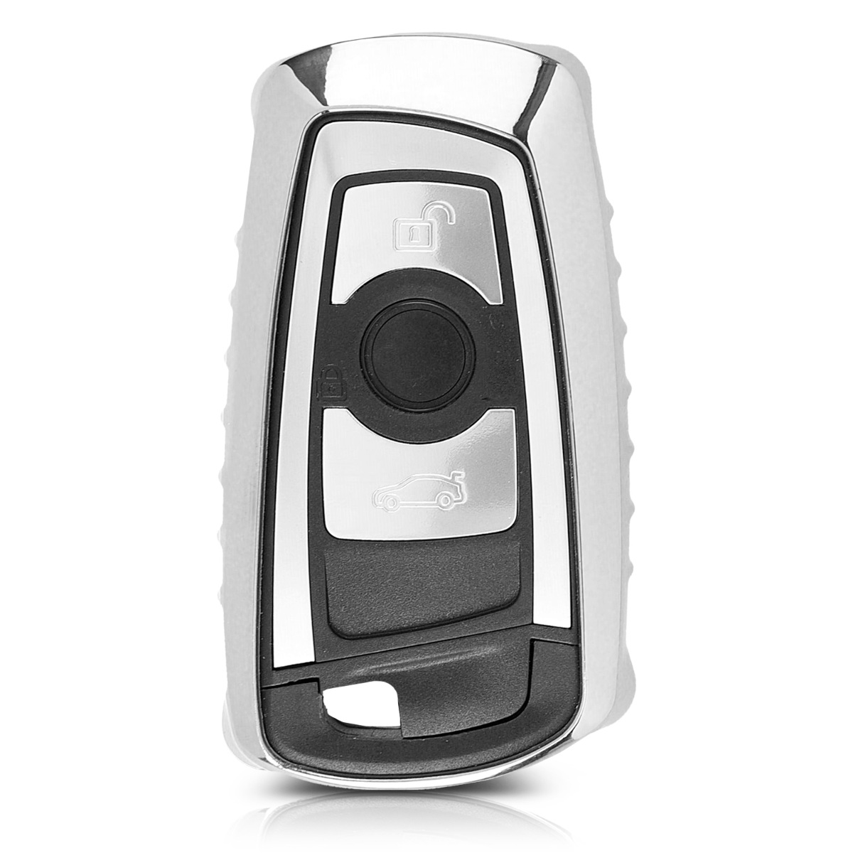 KW Θήκη Κλειδιού BMW - Σιλικόνη - 3 Κουμπιά - Keyless Go - Silver High Gloss (44262.94)