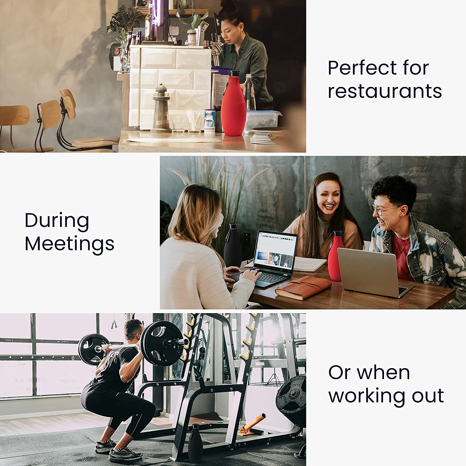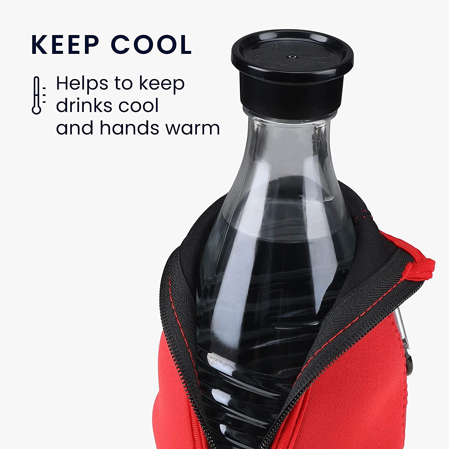 Ταυτόχρονα μπορείτε να την χρησιμοποιήσετε ως δείκτη σε ένα πάρτι για να ξέρετε πάντα πιο ποτό είναι το δικό σας. Προστατεύοντας τα χέρια σας από το κρύο μπουκάλι. Εκτός από δροσερά μπορείτε να διατηρήσετε και ζεστά τα ποτά σας ή ροφήματά σας για μεγαλύτερο διάστημα. Επίσης η θήκη διαθέτει ένα εύχρηστο φερμουάρ.