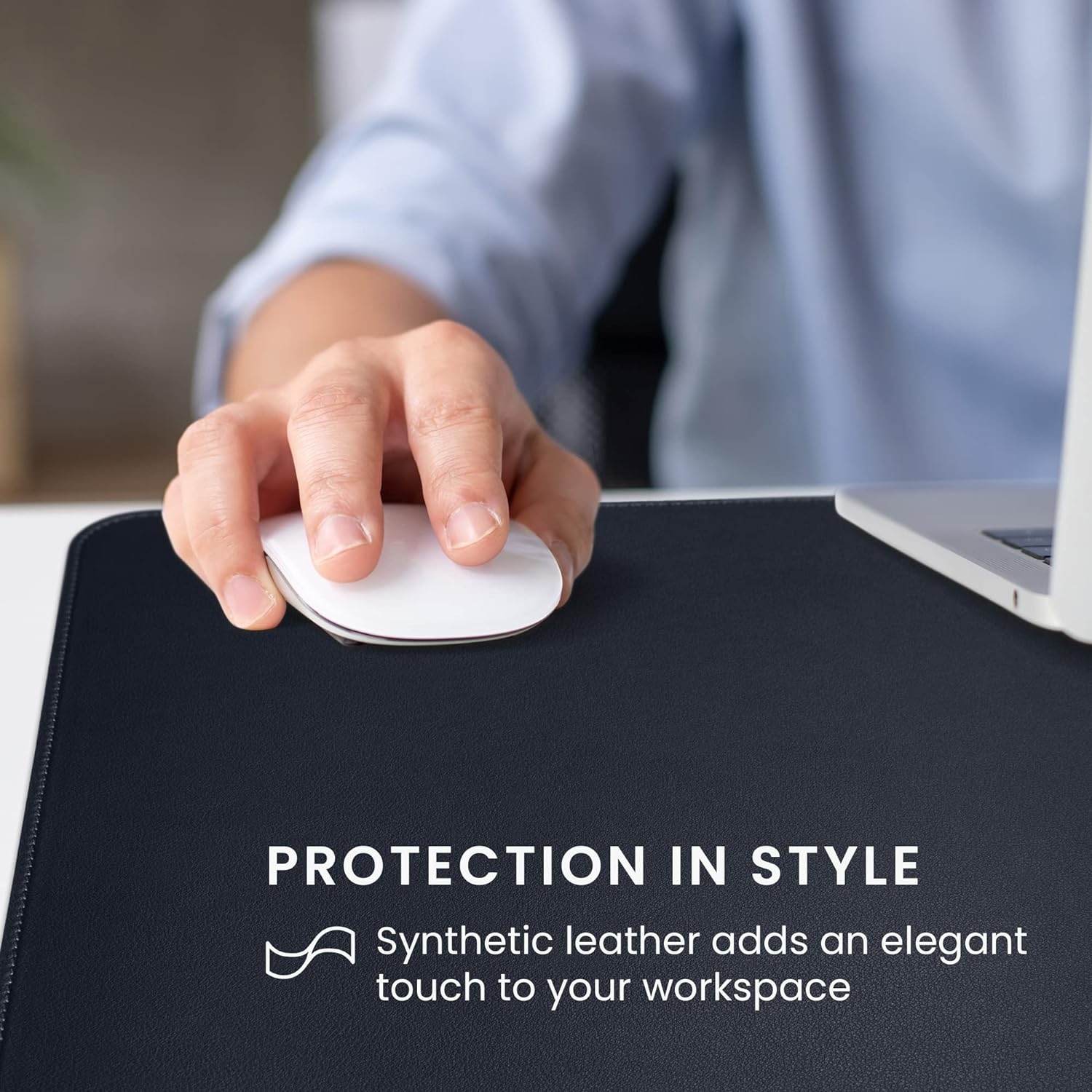 Προστατεύστε το γραφείο σας με στιλ με το μοναδικό Desk Pad της KW. Κατασκευασμένο για τους απαιτητικούς χρήστες, από εξαιρετικό PU δέρμα από την μία επιφάνεια και αντιολισθητικό PU δέρμα Suede από την άλλη, για μεγάλη σταθερότητα. Η απαλή επιφάνεια του χαρίζει ελευθερία κινήσεων κατά τη χρήση του ποντικιού με μοναδική ακρίβεια.