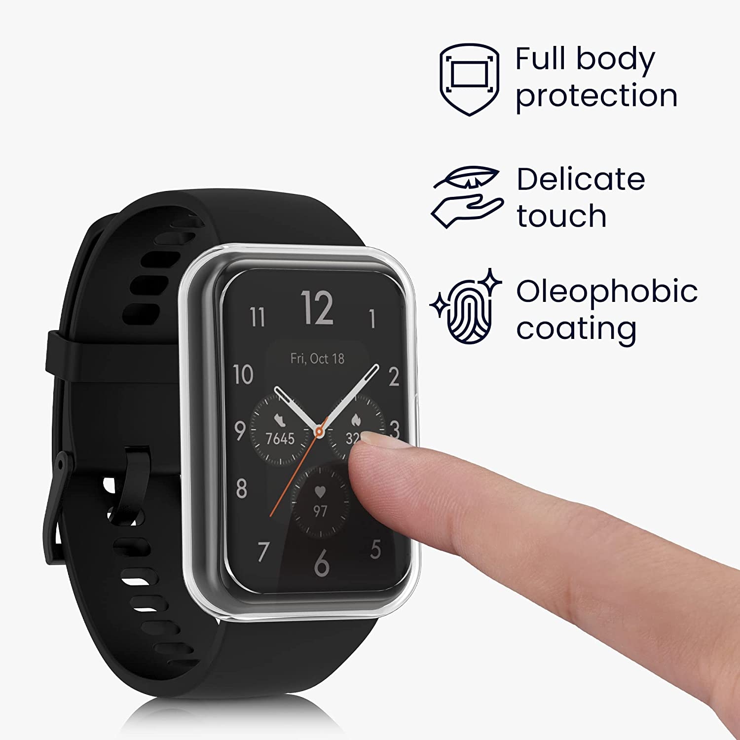 Κατασκευασμένη από μαλακή σιλικόνη (TPU) για καλύτερο κράτημα με ολεοφοβική επίστρωση, ώστε να προστατεύει πλήρως το smartwatch σας από κραδασμούς και χτυπήματα ή γρατσουνιές που μπορεί να προκληθούν κατά την καθημερινή χρήση. Επιπλέον, χάρη στη θήκη, το λουράκι δεν φθείρεται τόσο εύκολα και έτσι μπορείτε να παρατείνετε την διάρκεια ζωής του.