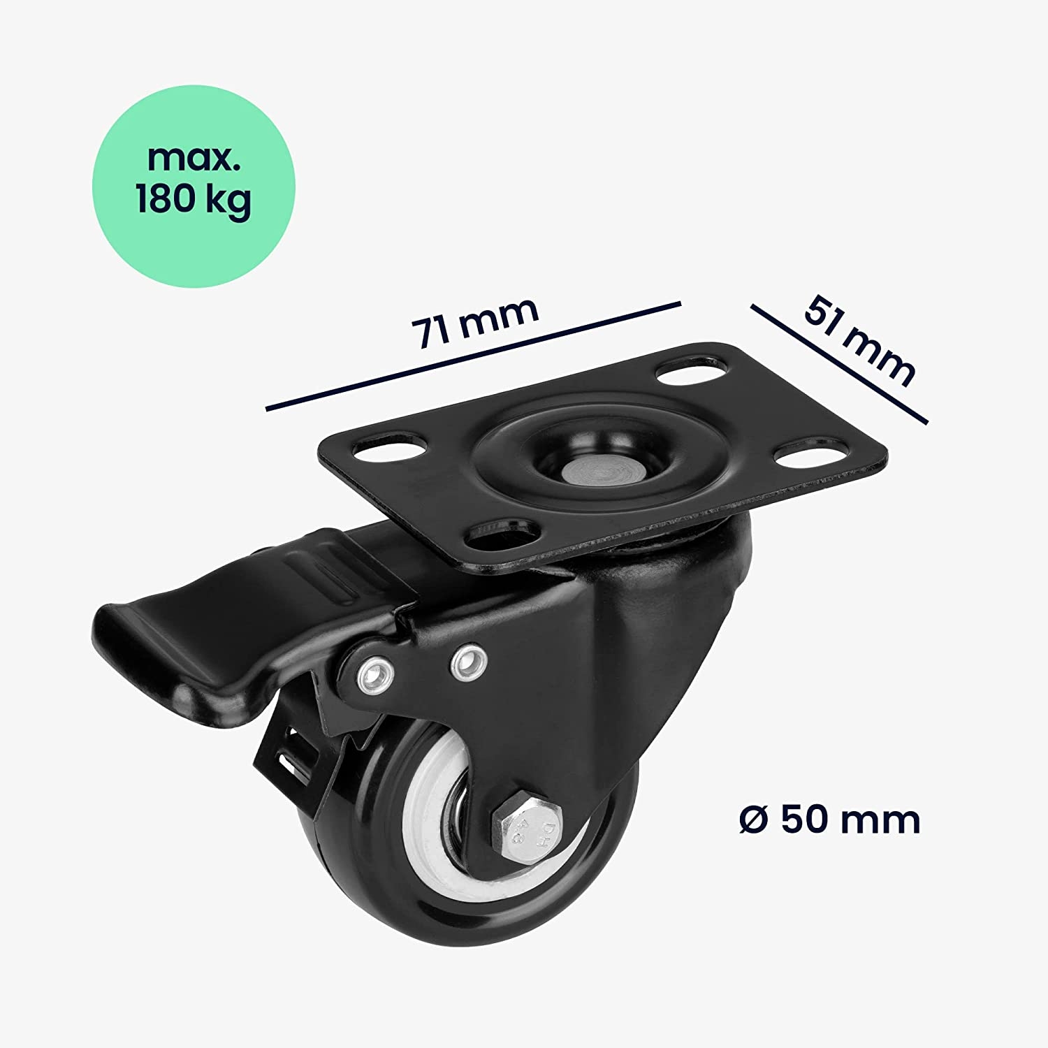 Οι αθόρυβοι τροχοί δεν αφήνουν ίχνη στο πάτωμά σας και είναι κατάλληλοι για σκληρές, μαλακές, επίπεδες και επίσης ανώμαλες επιφάνειες. Τοποθετήστε τα στο κάτω μέρος των επίπλων και μετατρέψτε ένα δυσκίνητο έπιπλο σε ένα εύκολο στην μετακίνηση. Εναλλακτικά, χρησιμοποιήστε το για να ανυψώσετε τα έπιπλα από το έδαφος ή να φτιάξετε ένα προσαρμοσμένο τρόλεϊ.