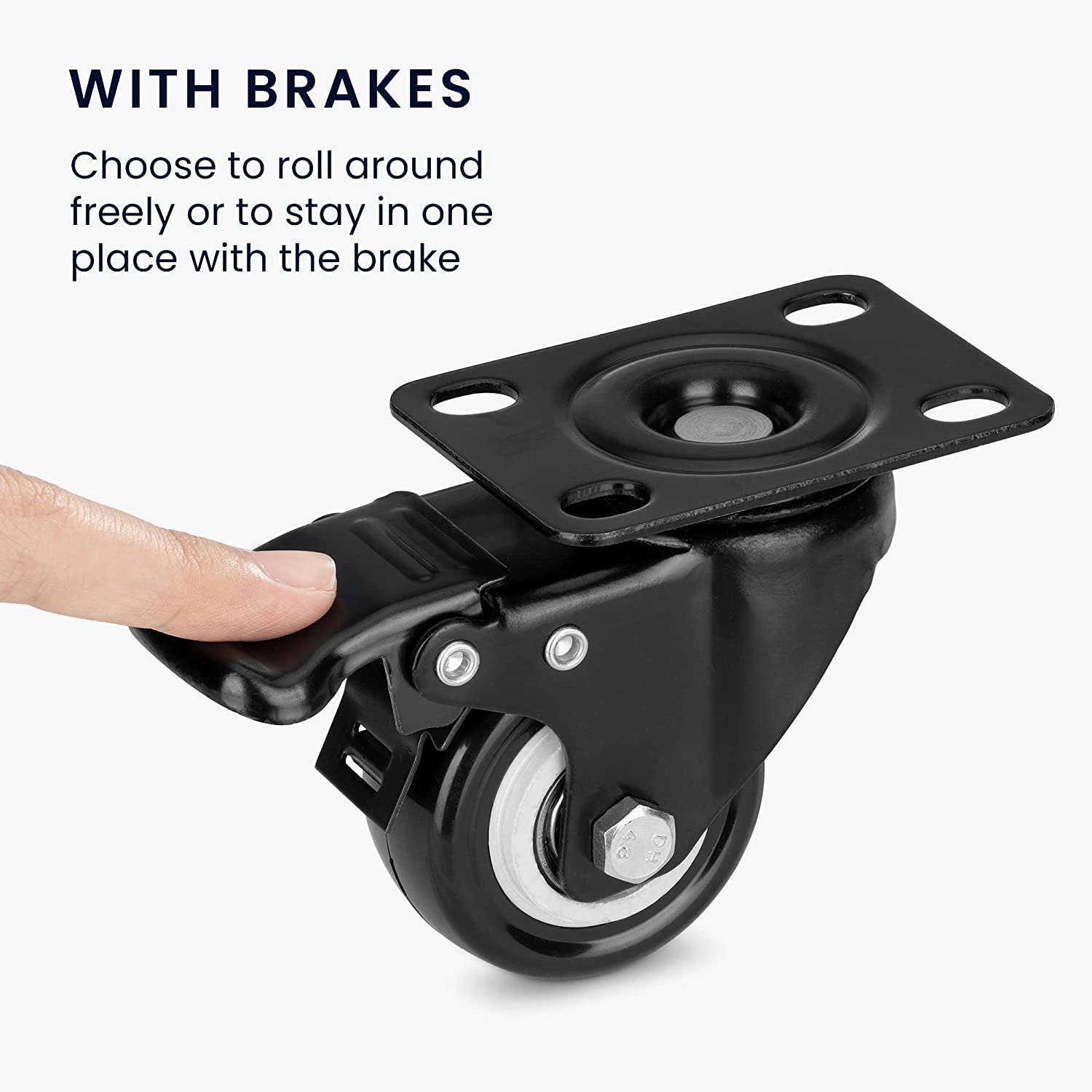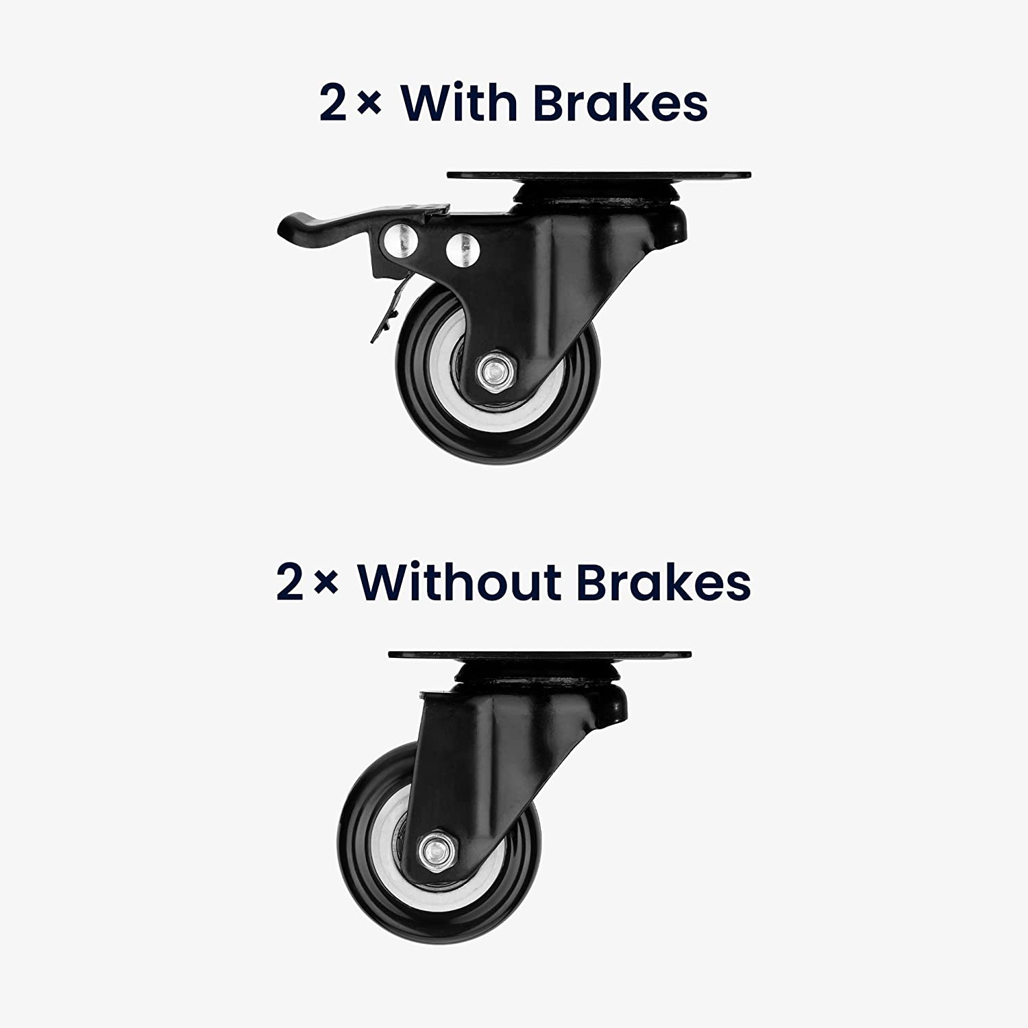 Δύο από τους τέσσερις τροχούς διαθέτουν φρένα για να κλειδώνουν στη θέση τους, έτσι ώστε τα έπιπλα ή το τρέιλερ σας να παραμένουν σταθερά σε ένα σημείο, αν δεν θέλετε να τα μεταφέρετε. Επίσης τα ροδάκια περιστρέφονται κατά 360 μοίρες, διευκολύνοντας την κύλιση και τον ελιγμό των επίπλων στη σωστή θέση.
