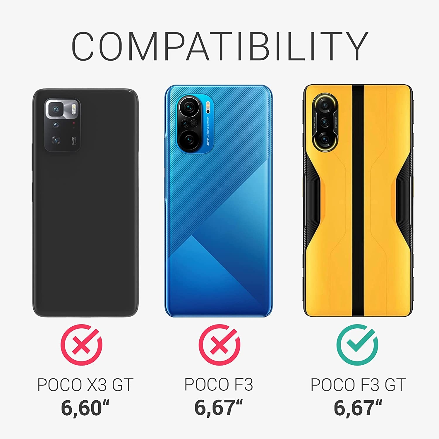 Η θήκη είναι συμβατή μόνο με το Xiaomi Poco F3 GT και όχι με το Xiaomi Poco F3.