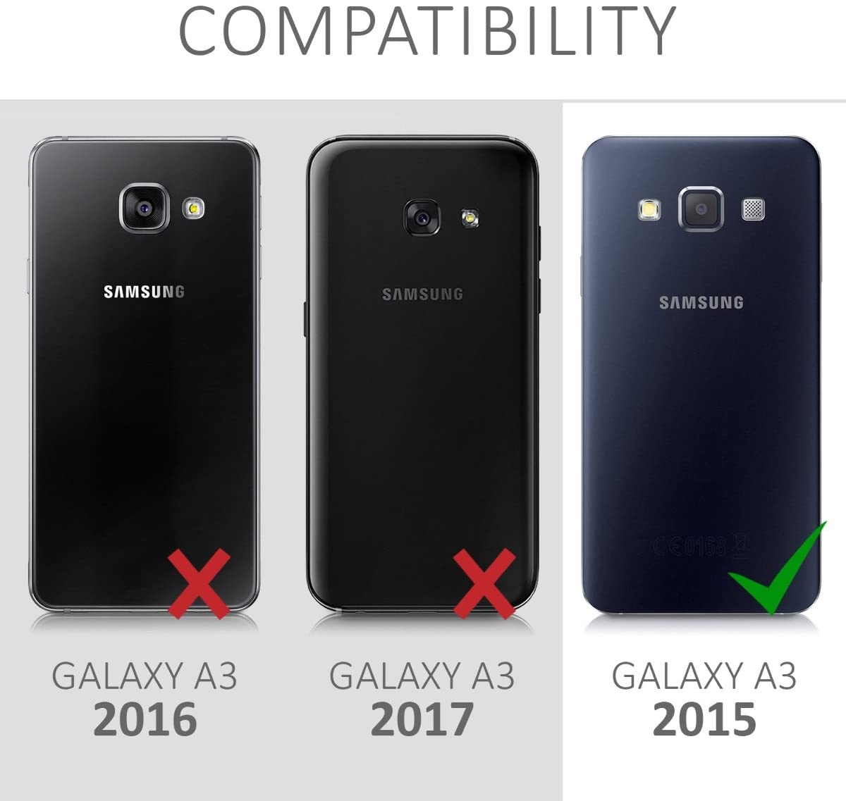 Η θήκη είναι συμβατή μόνο με το Samsung Galaxy A3 και όχι με το Samsung Galaxy A3 2016, Α3 2017.