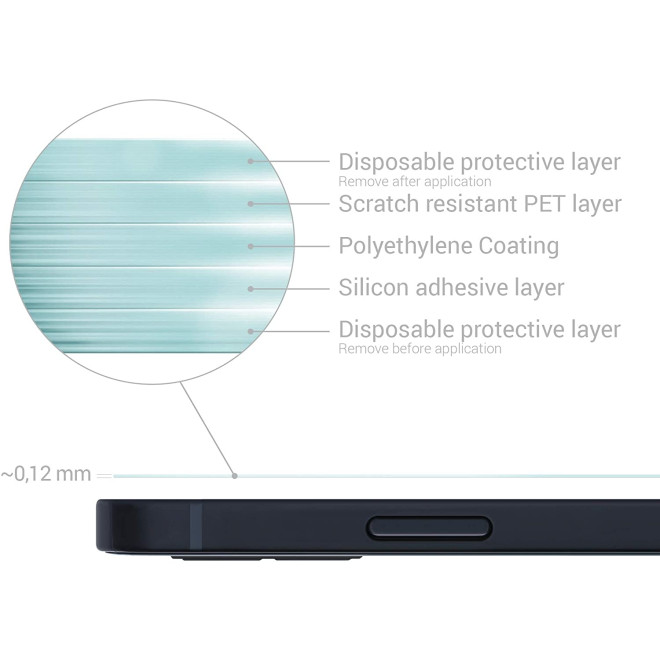 Κολλάει ομαλά χωρίς να δημιουργούνται ενοχλητικές φυσαλίδες αέρα, είναι ανθεκτική στις γρατσουνιές, πλένεται, είναι εξαιρετικά διαφανής και δεν επηρεάζει την λειτουργία αφής της οθόνης. Διαθέτει επίστρωση θερμοπλαστικού και σιλικόνης για μεγαλύτερη προστασία ενώ έχει μόλις 0,12 mm πάχος.